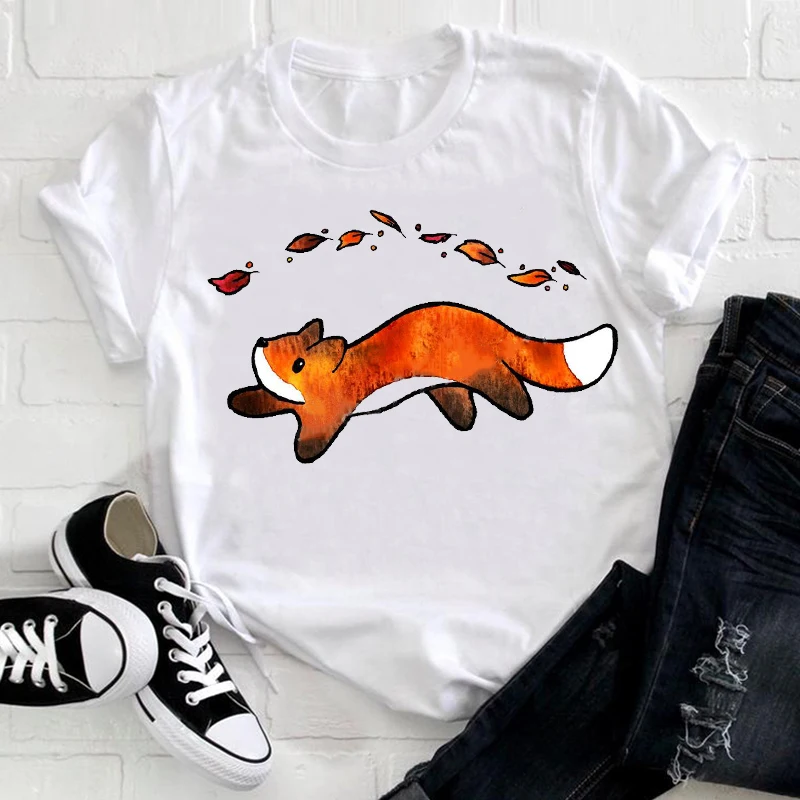 Женские милые футболки с рисунком лисы Футболка с принтом модные то...