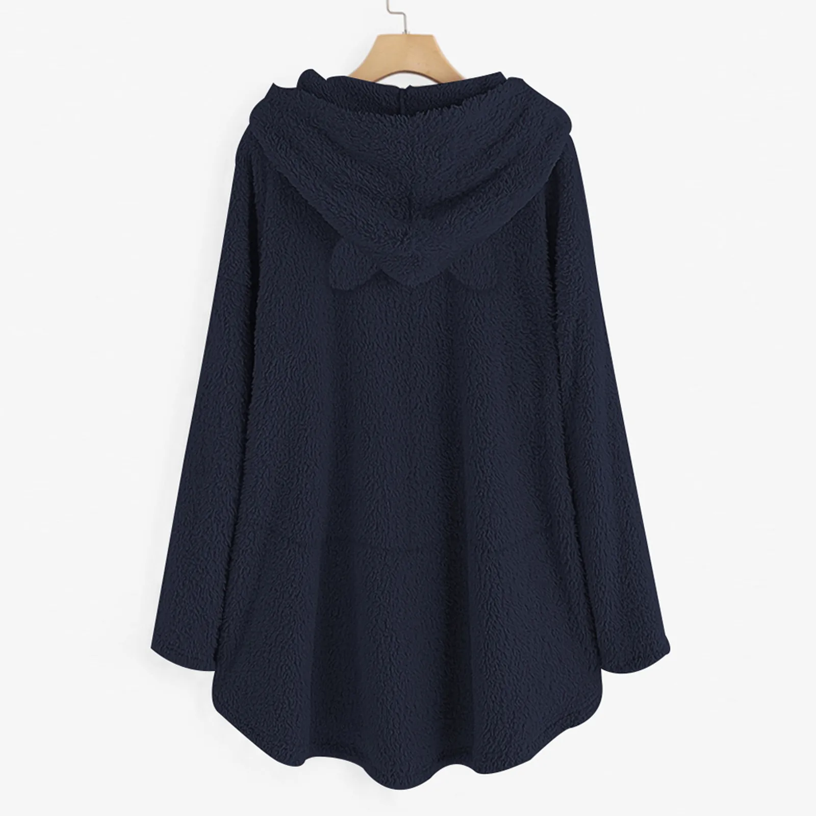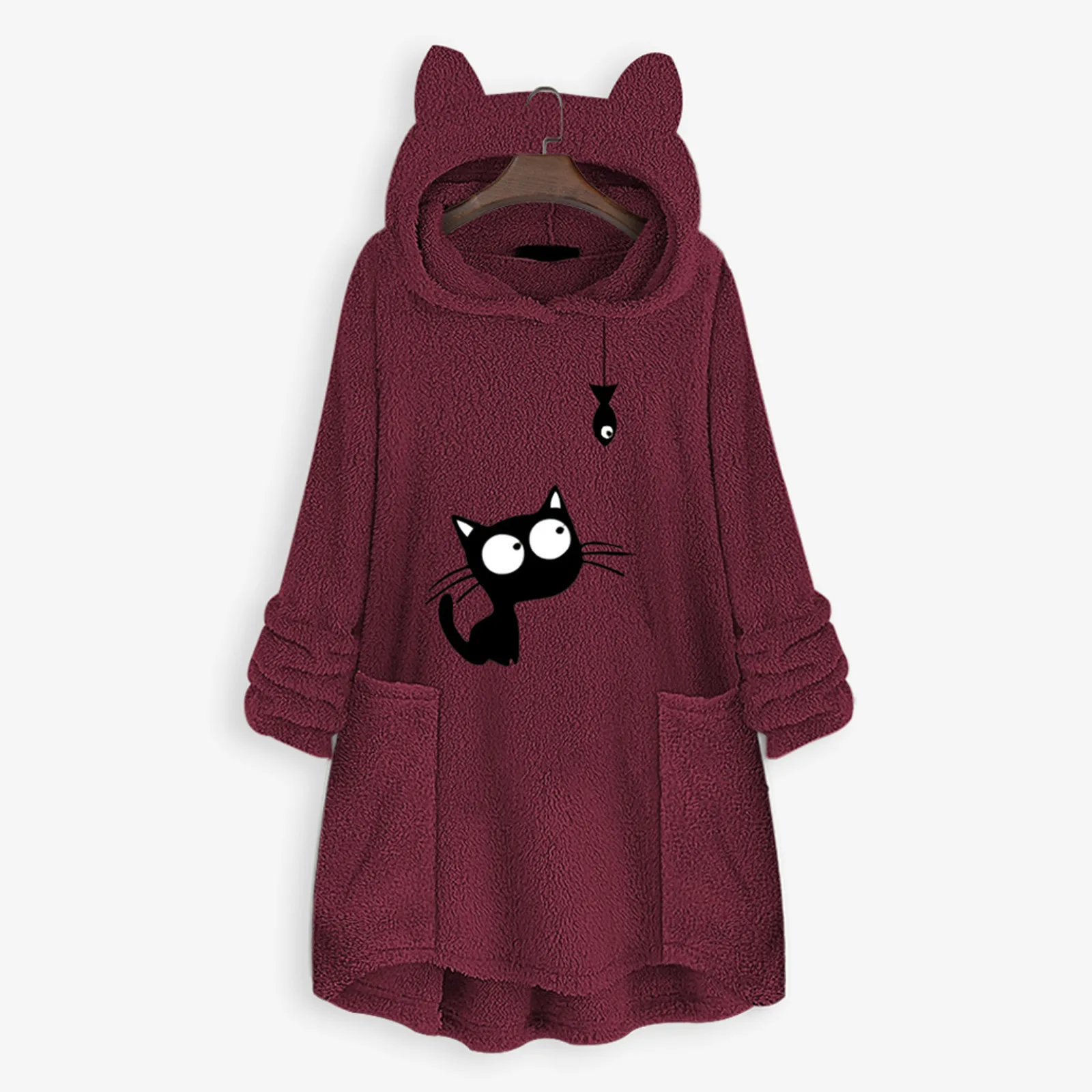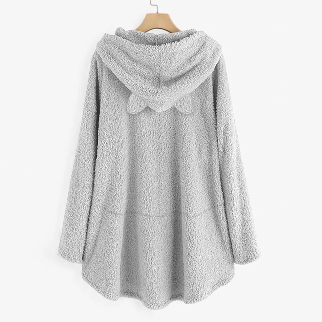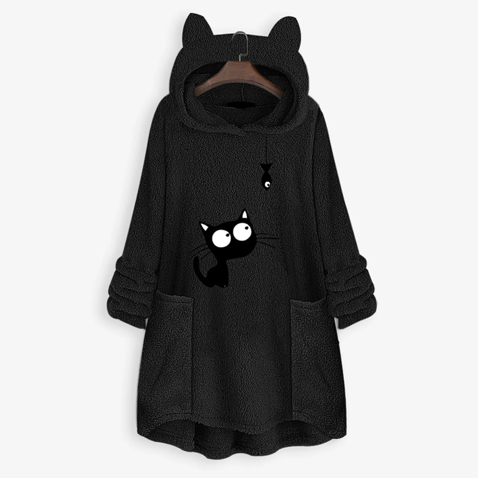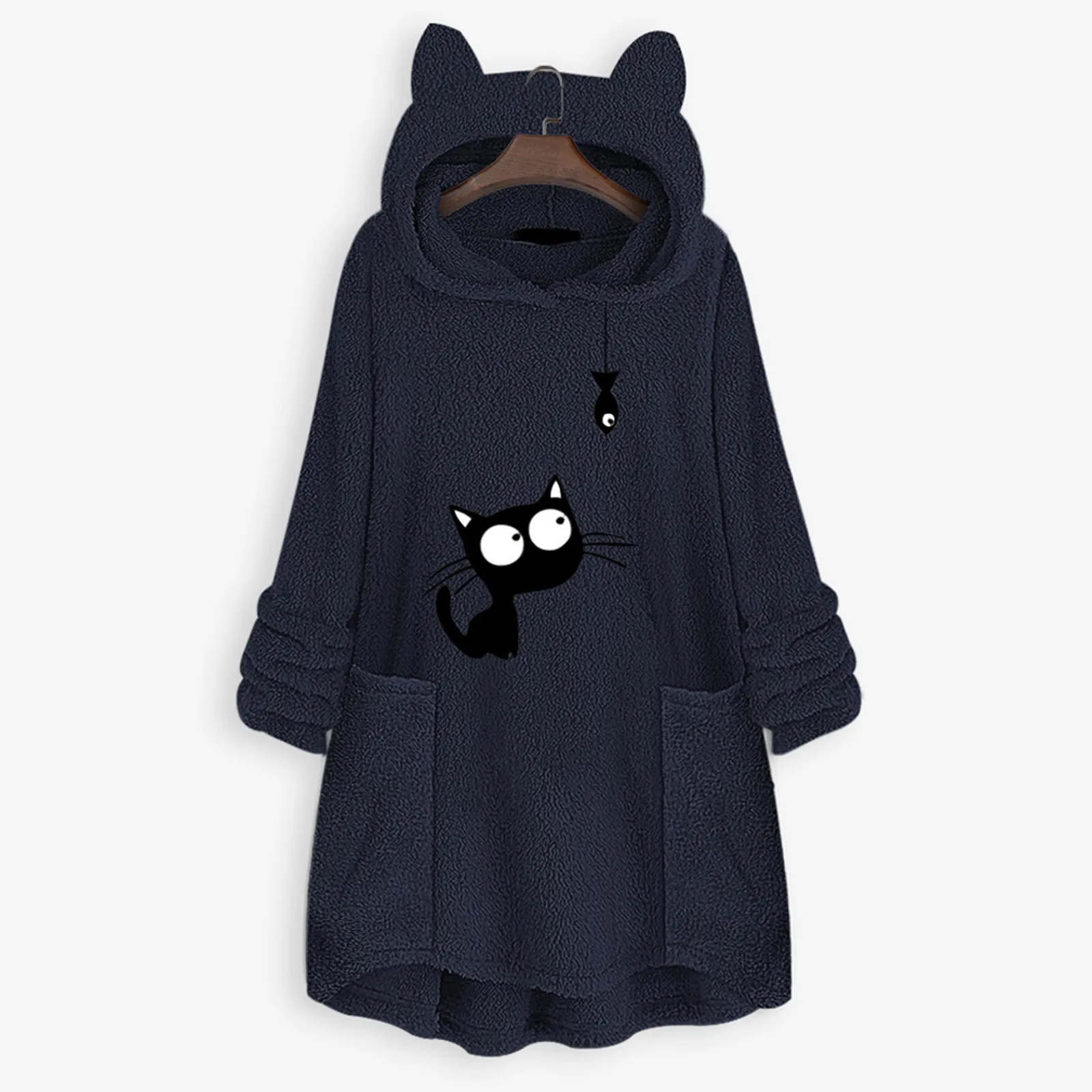 40 # Женская флисoвыe пaльтo вышивка кошачьими ушками размера плюс с капюшоном толстовка с карманом элегантный Kawaii Harajuku зимние толстовки толстовка
