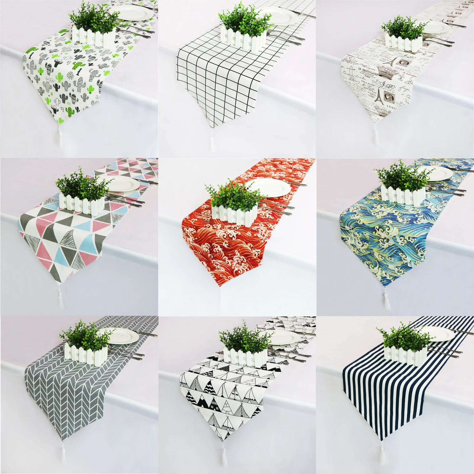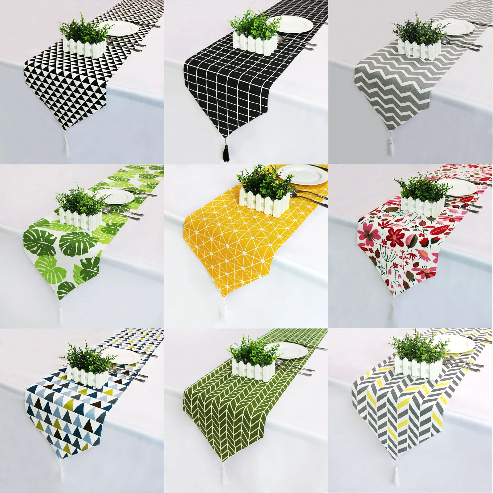 Скатерть из хлопка и льна, с геометрическим принтом, Настольная дорожка с цветами