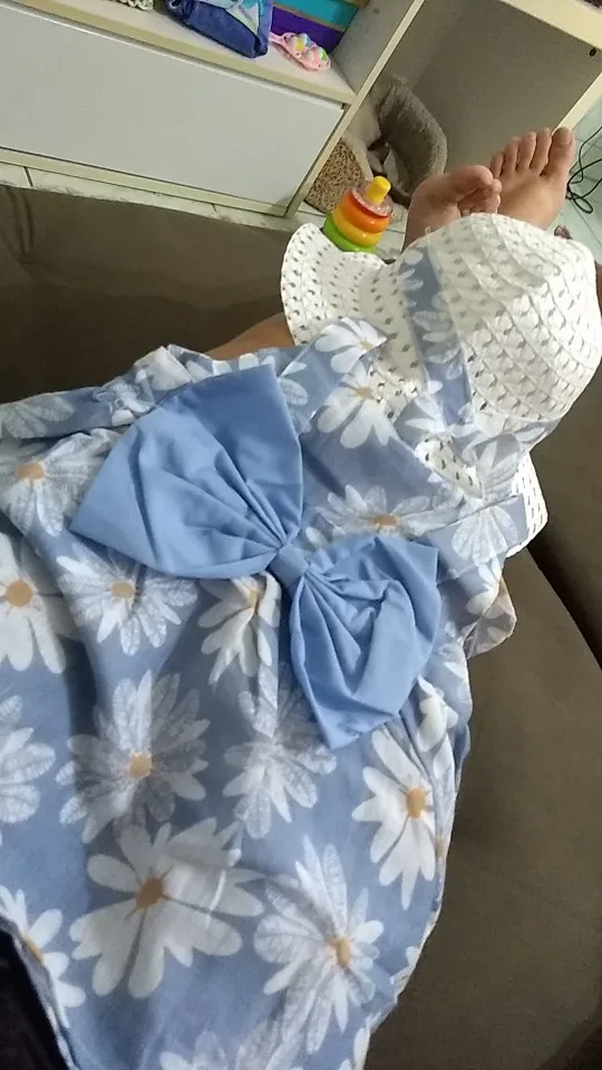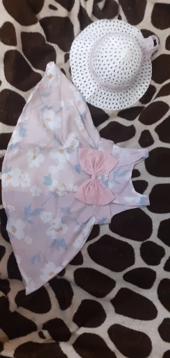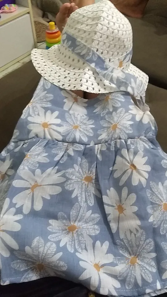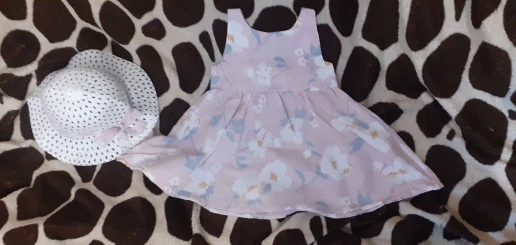 Платье само по себе красивое, цвет очень красивый и в комплекте со шляпой бесплатно. Материал платья не самый лучший, тонкий. Но для лета, жаркий день или пляж хорошо носит. Я спрашивал 6-12 месяцев, и у моей дочери 10. Был немного выключен, но уже хотел бы использовать. PS моя дочь-обтягивающие платья, которые всегда соответствуют возрасту. Он красивый и поставляется с прихотью.
