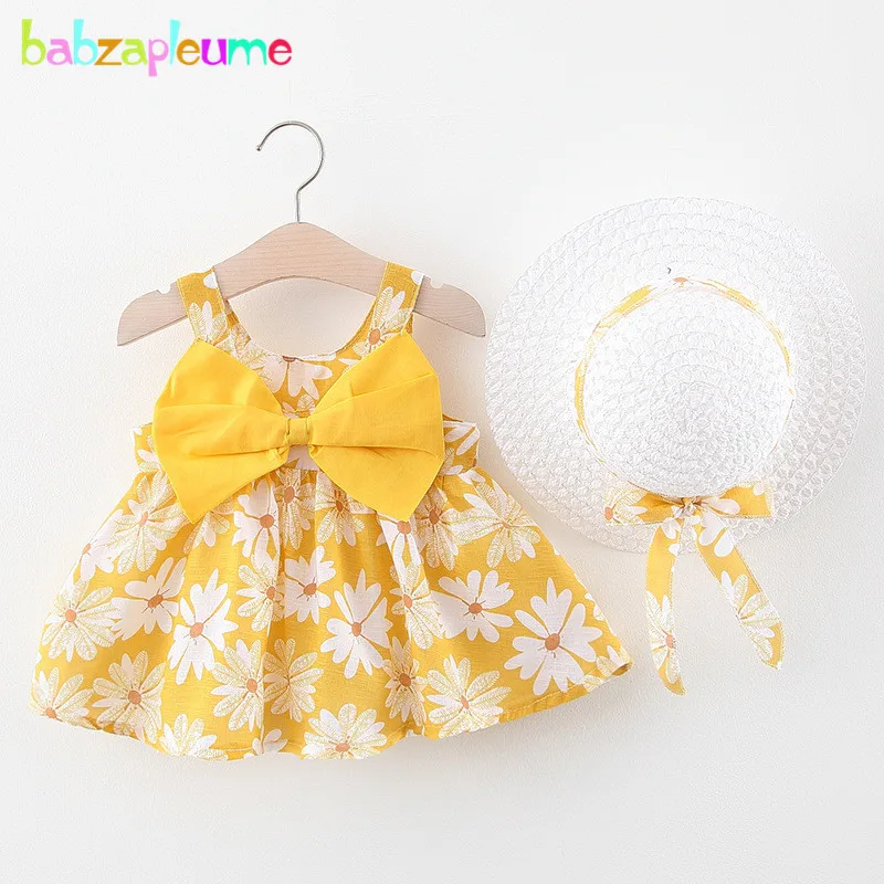 Комплект детской летней одежды из 2 предметов, хлопковое платье принцессы без рукавов с бантом и цветами для маленьких девочек, Пляжное Платье + сарафан, 1984