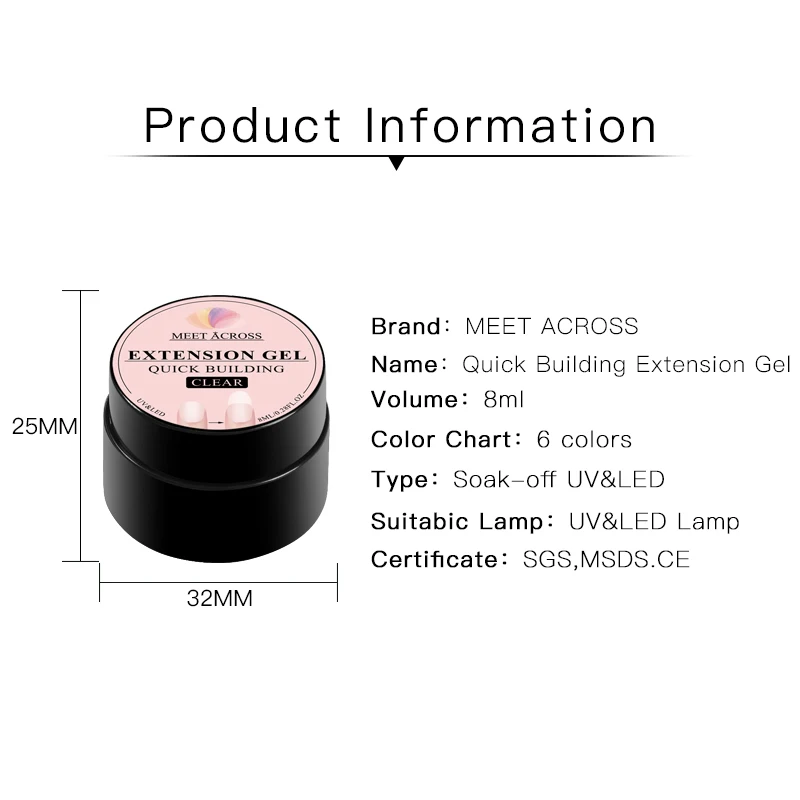 Гель для наращивания ногтей MEET ACROSS, 8 мл, для акрилового волокна, УФ светодиодный гель для маникюра, желе, белый прозрачный гель для наращивания ногтей