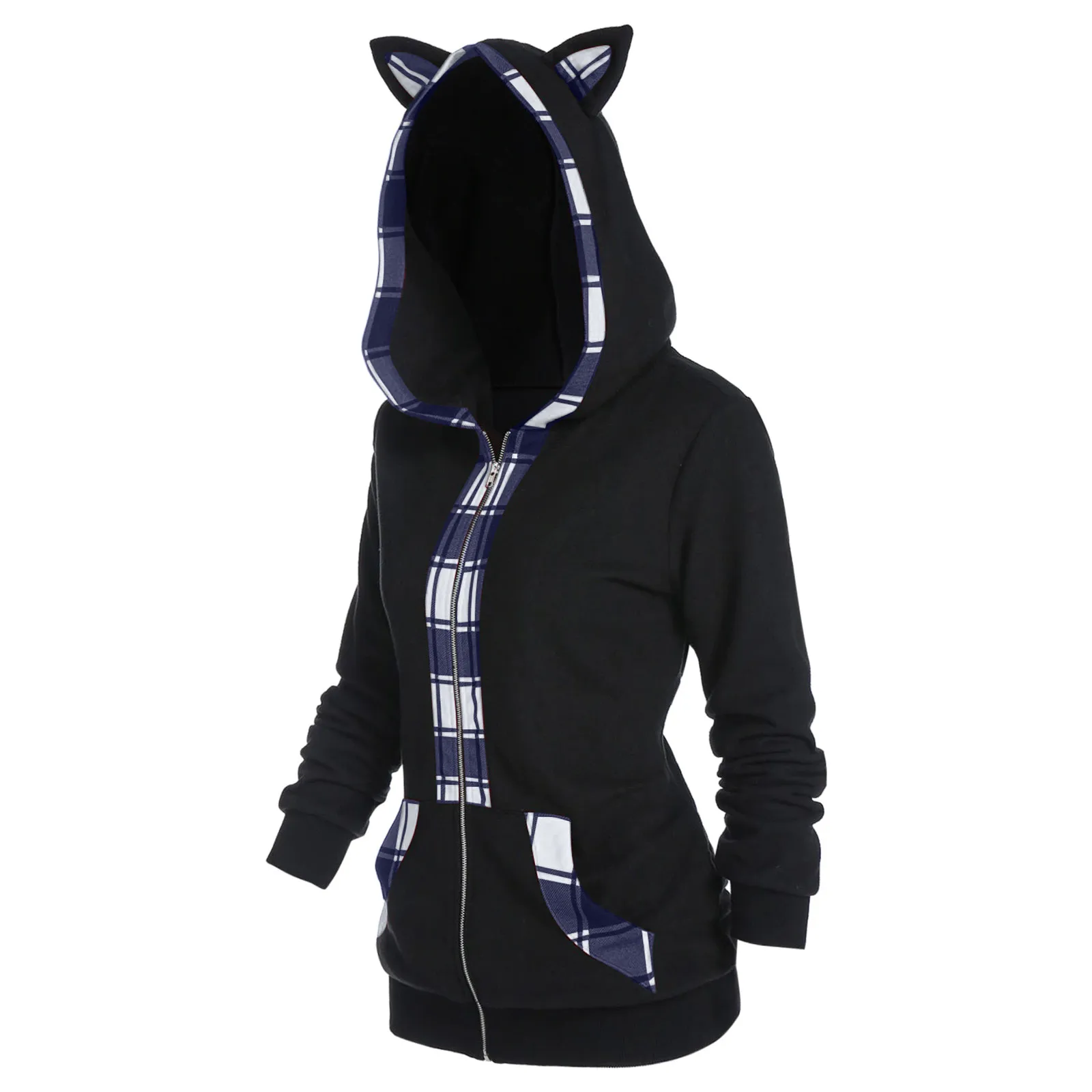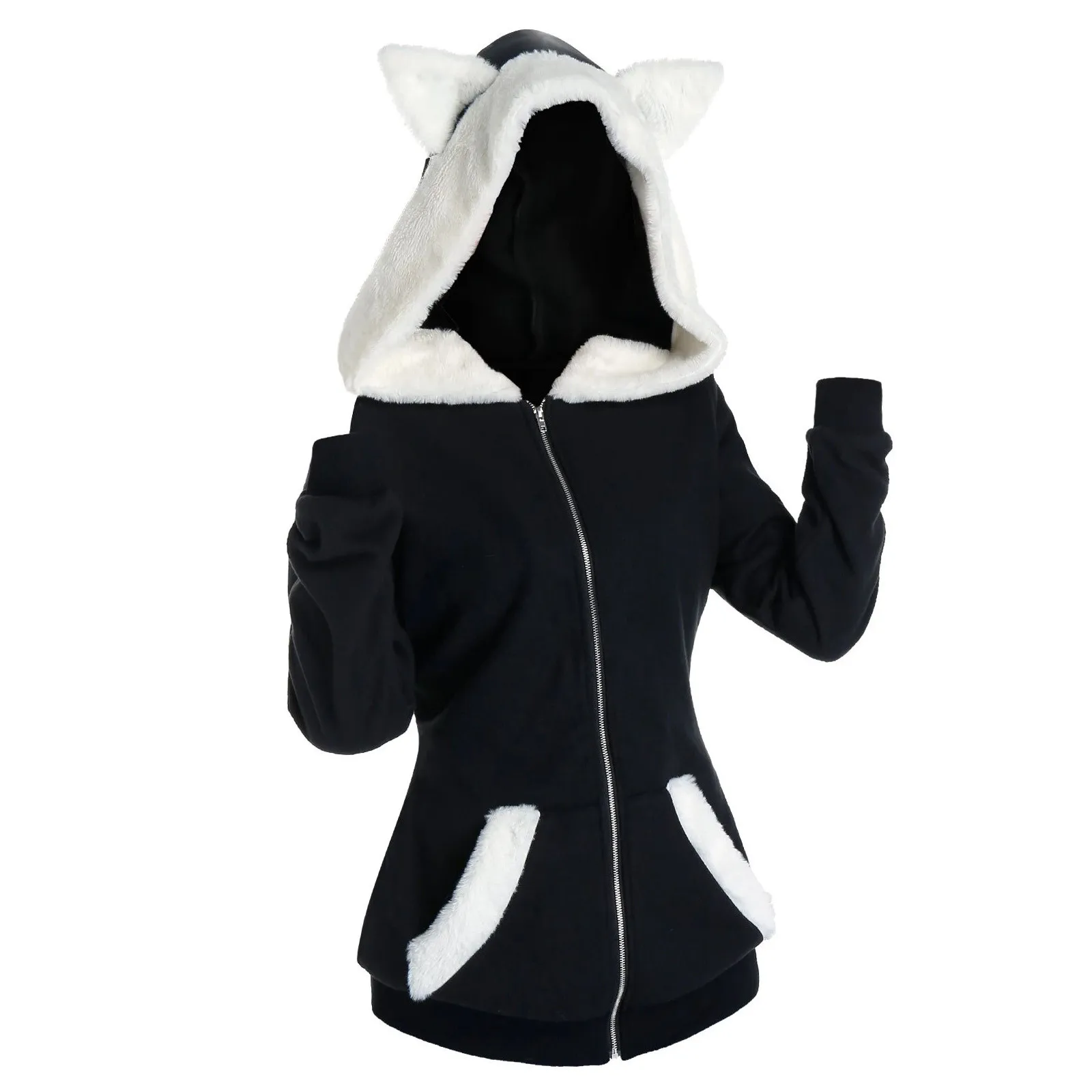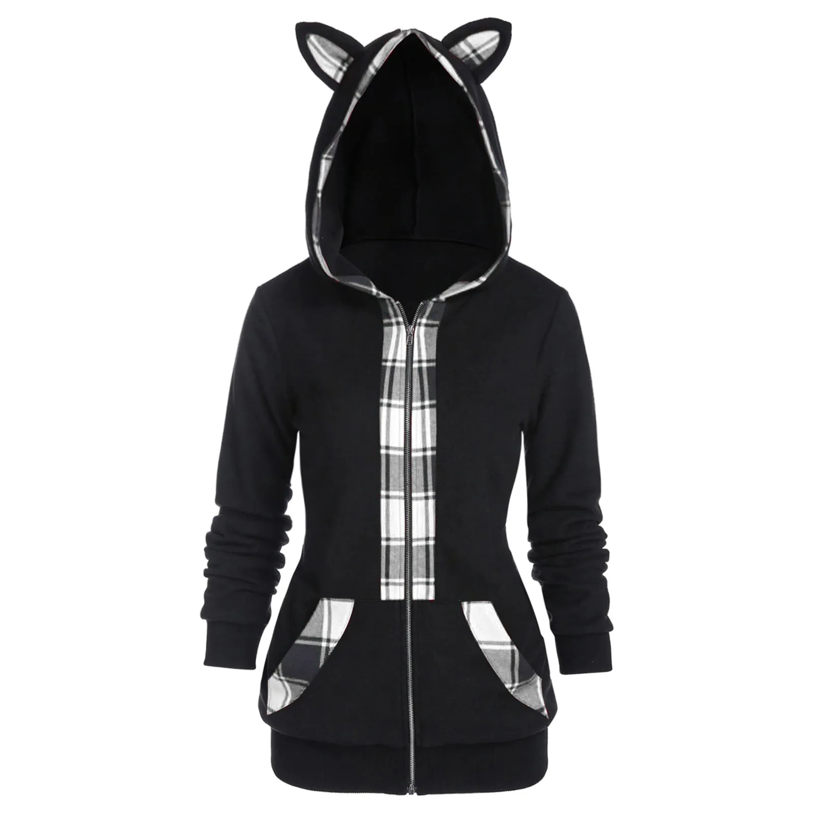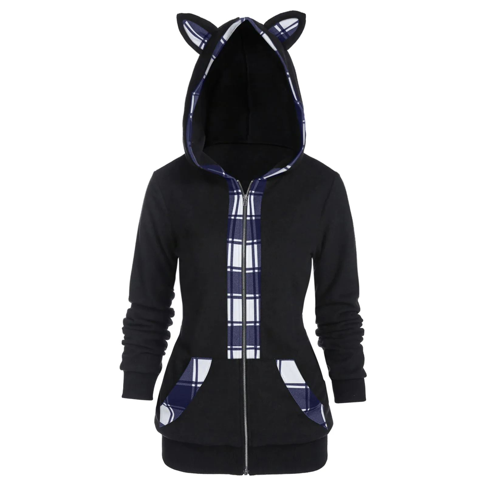 Толстовка унисекс с длинным рукавом, на молнии, с кошачьими ушками