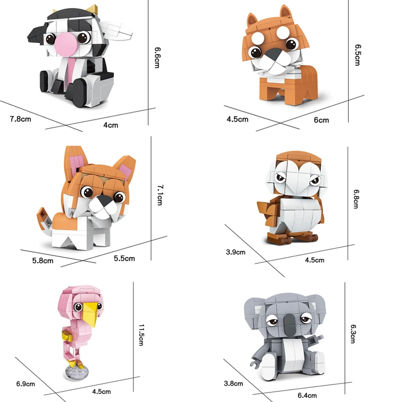 Конструктор из серии животных: кошка, собака, Пингвин, коала, коров...