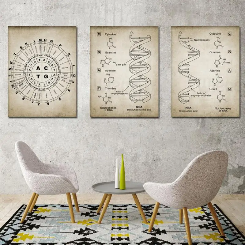 Плакат в стиле ретро, настенная живопись на холсте с ДНК и РНК-генами, биология, лаборатория, классная комната, для стен Decor