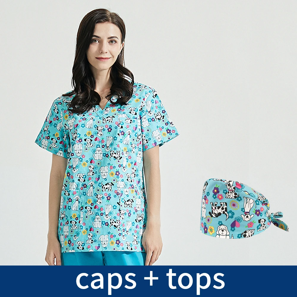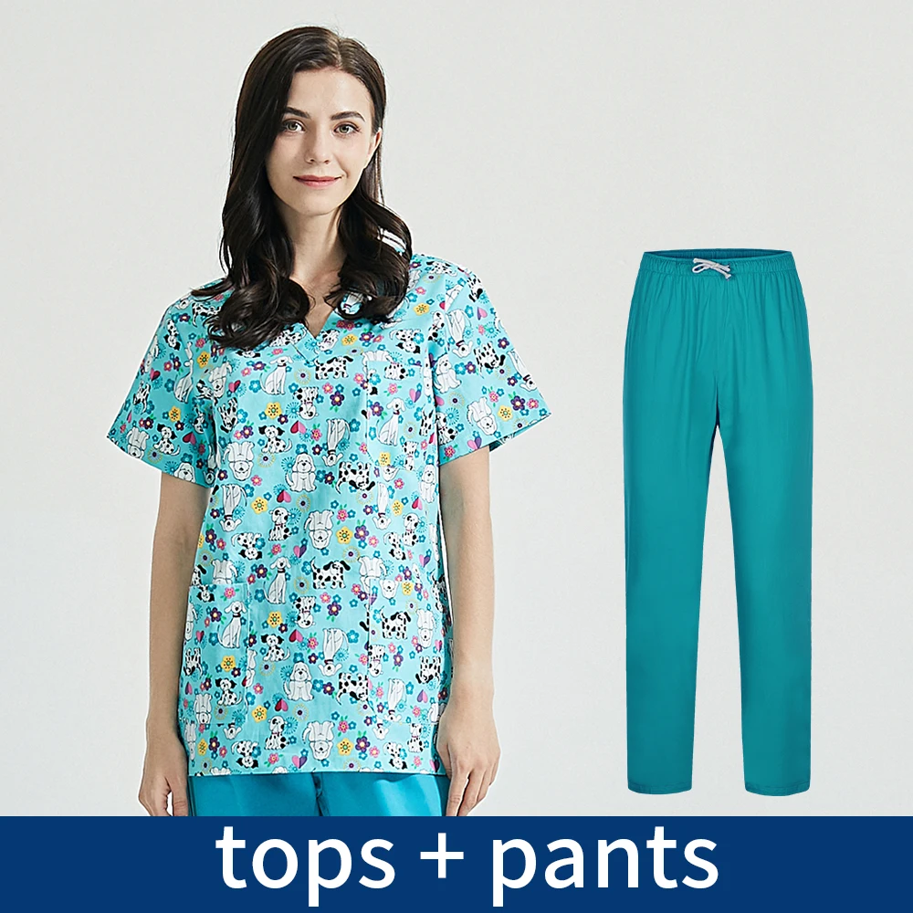Scrubs tops Cute Cartoon printing Kindergarten teacher workwear pet...