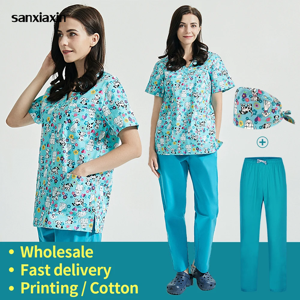Одежда для хирургии с принтом животных, хлопковая медицинская одежд...