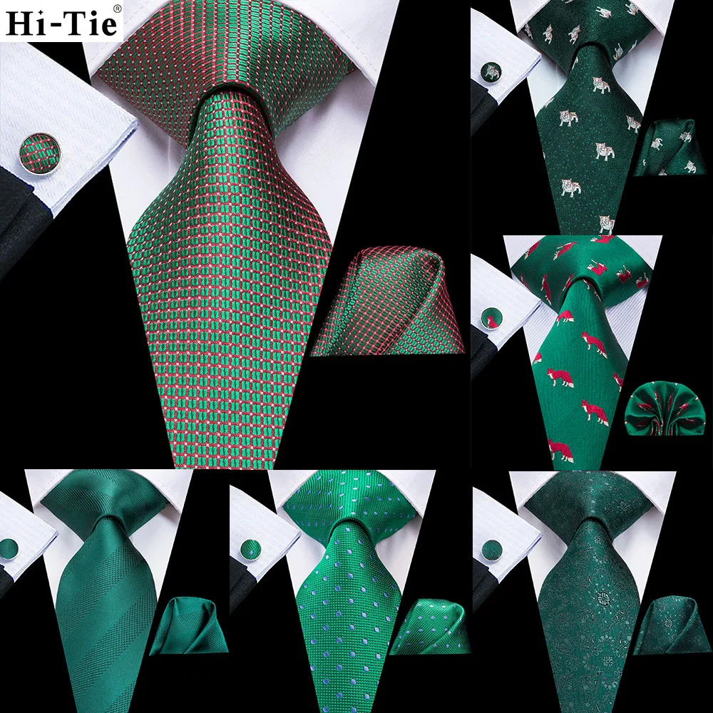 Hi-Tie, мужской галстук, зеленый, Одноцветный, Пейсли, Шелковый, Свадебный галстук для мужчин, Hanky, запонки, набор, для бизнеса, вечеринки, дропшиппинг, модный дизайнер