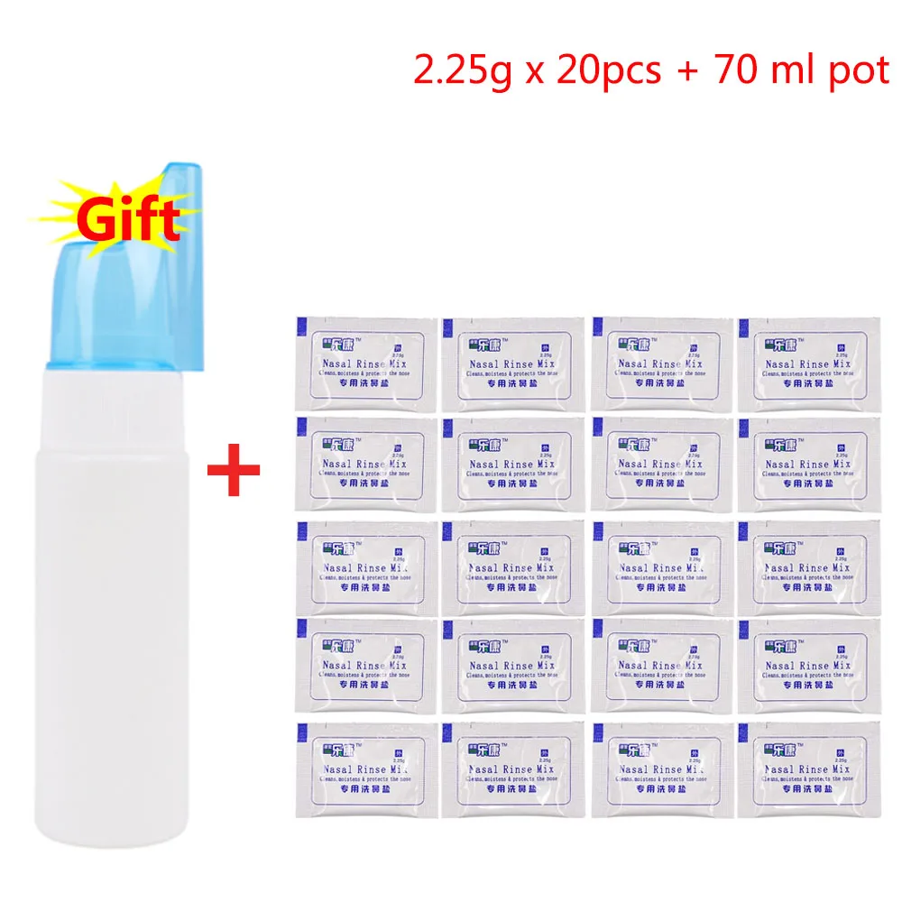 20 шт., носовая краску, смесь соли, 70 мл, носовая краску, очиститель носа, портативная носовая бутылка для мытья, полив, аллергию, рельефную краску, горшок нети