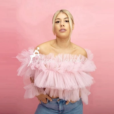 Милая детская розовая Тюлевая Женская короткая блузка с оборками в несколько рядов 2021 модная летняя вечерняя блузка с открытыми плечами для девочек на заказ