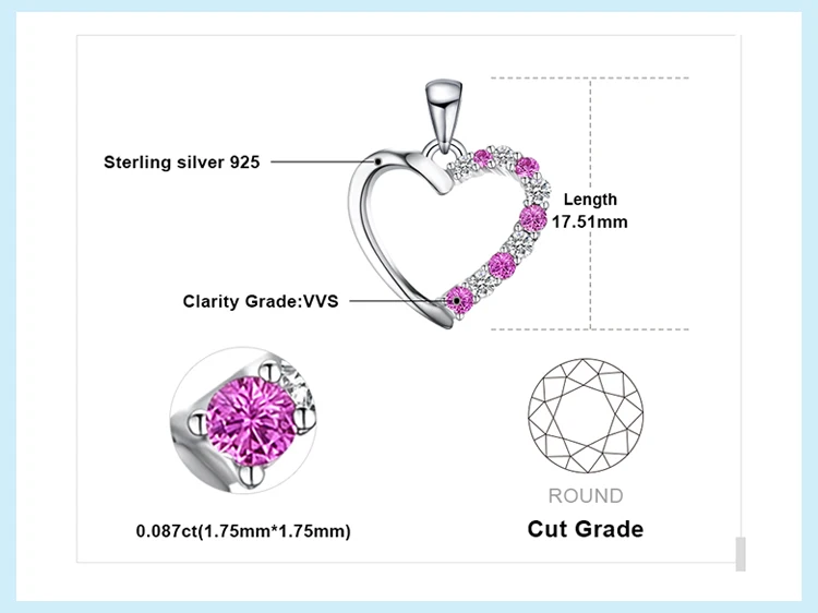 Женский кулон из серебра 925 пробы, с розовым сапфиром
