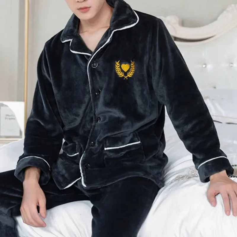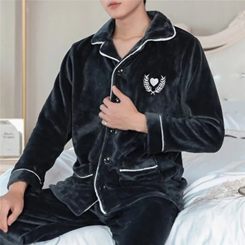 Теплая Пижама, Мужская Фланелевая Зимняя Толстая пижама с длинным рукавом, Повседневная Осенняя Пижама, Мужская Флисовая Пижама для сна кораллового цвета