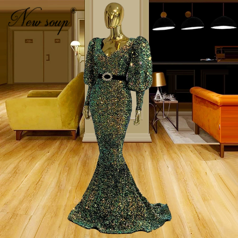 Женское вечернее платье с V-образным вырезом, зеленое платье с блестками и длинным шлейфом для вечевечерние, 2021
