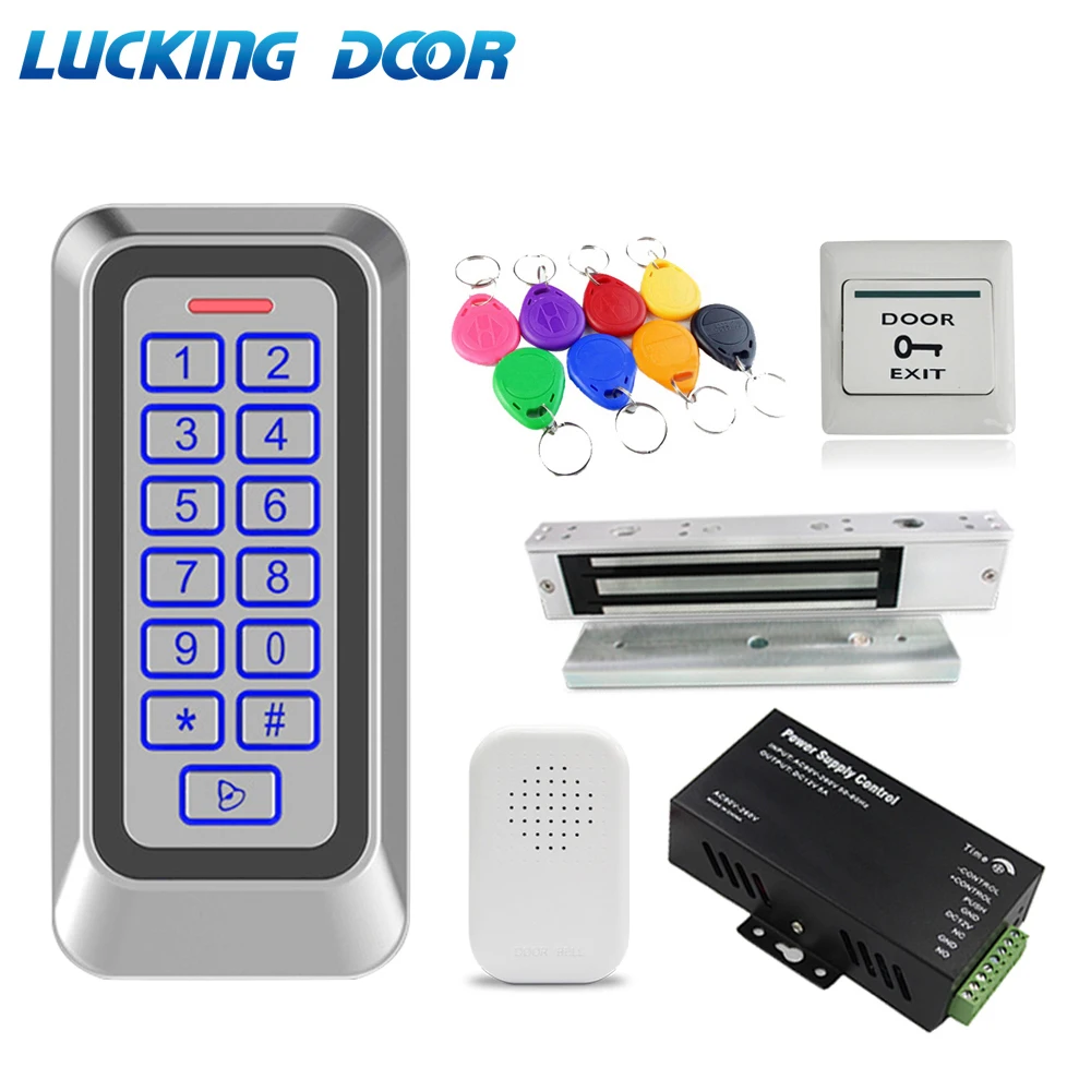ПосылкаВ том числе: Клавиатура контроля доступа + блок питания + магнитный замок 180 кг + кронштейн U + дверной звонок + кнопка выхода + 10 брелоков