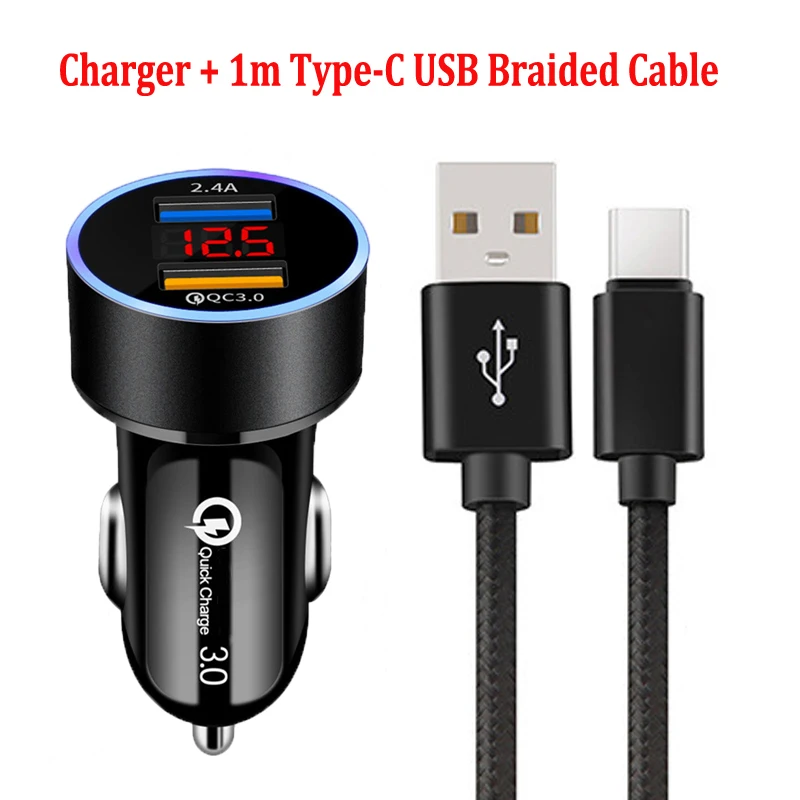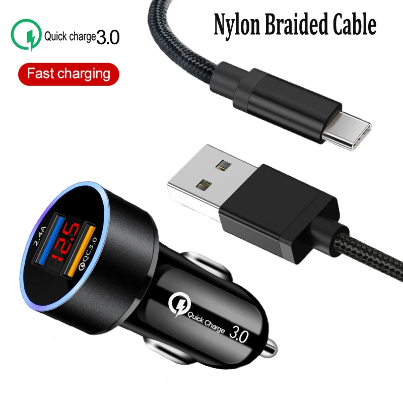 USB Type-c зарядный кабель быстрое автомобильное зарядное устройство LED двойной USB телефонный адаптер Быстрая зарядка для Xiaomi 6X A2 A3 9T Note 10 9 8 Lite Redmi