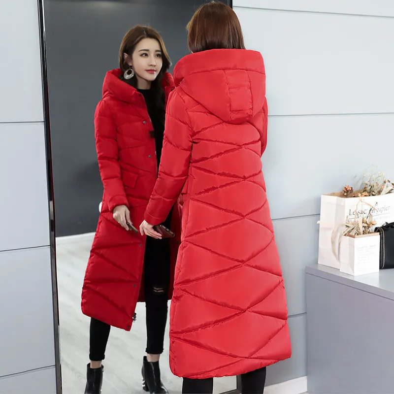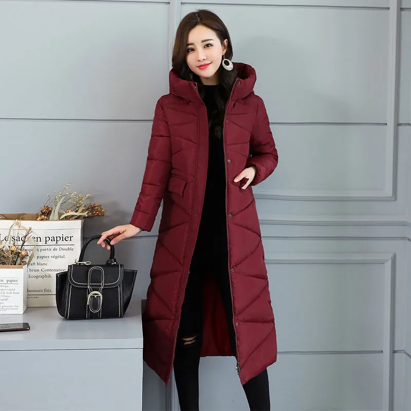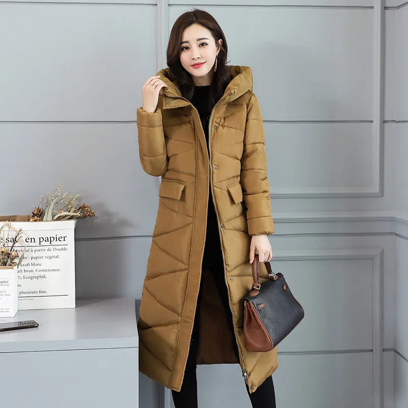 Женская Стеганая куртка длиной до колен, приталенная куртка с капюш...