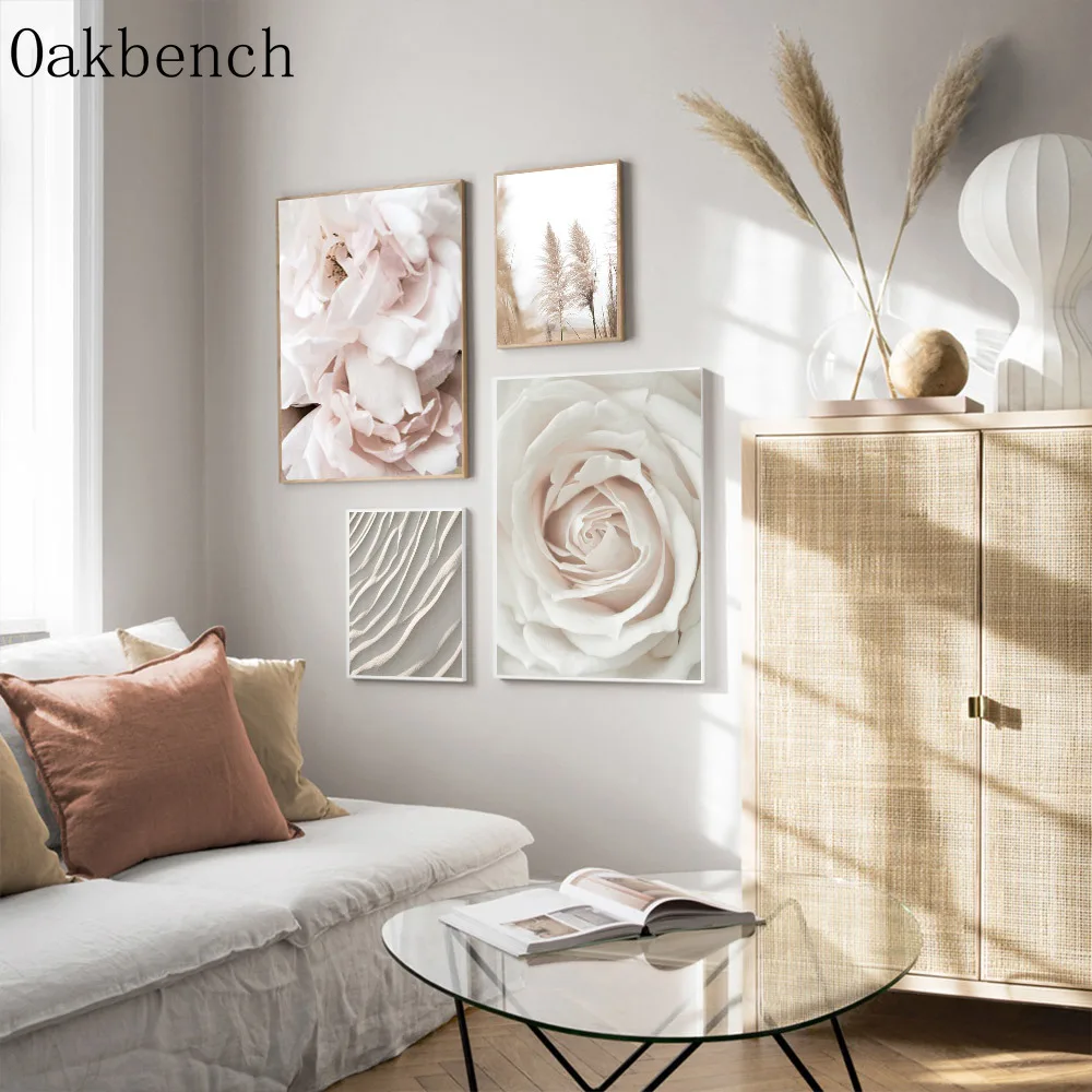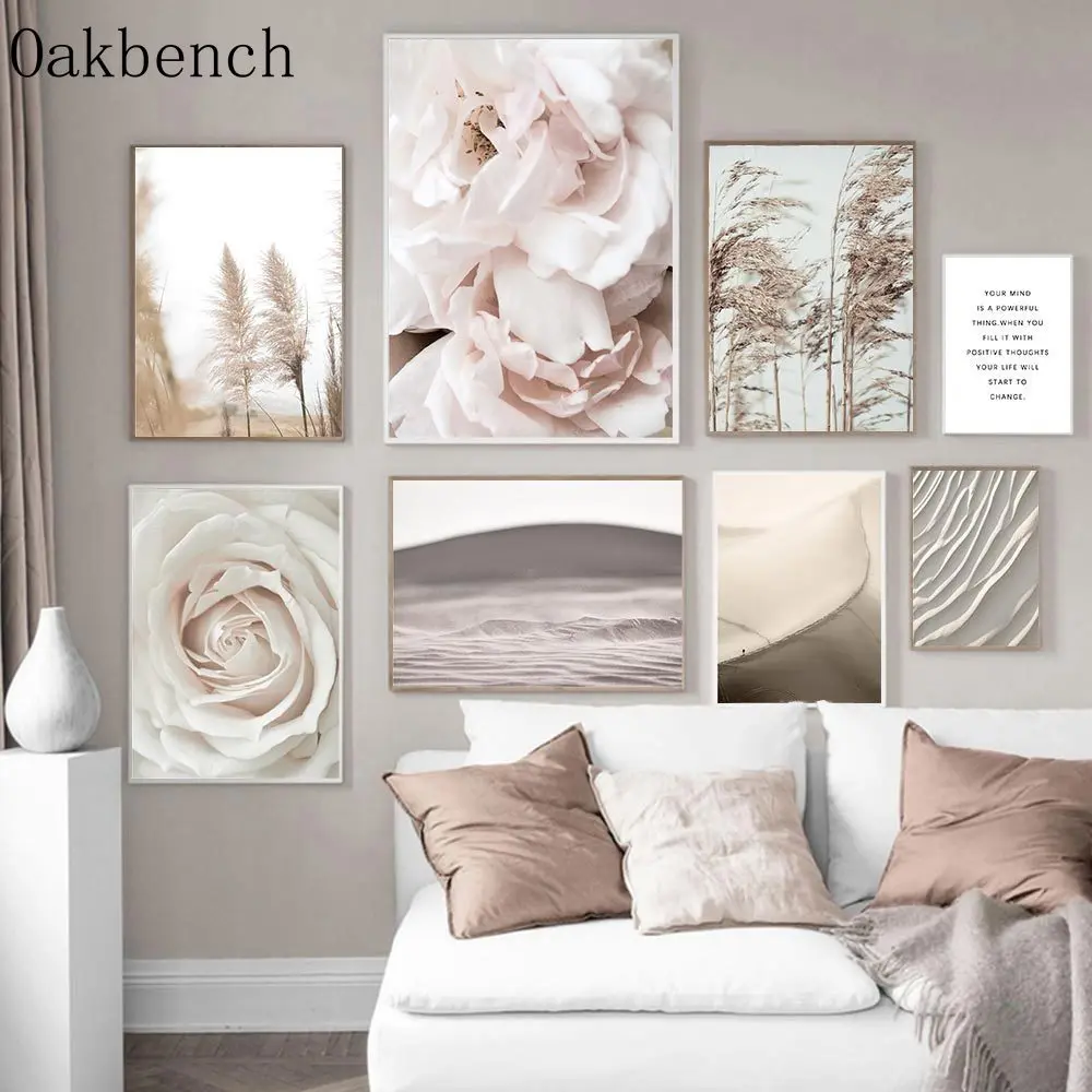 Холщовый постер с розовыми цветами для женщин, модный художественны...