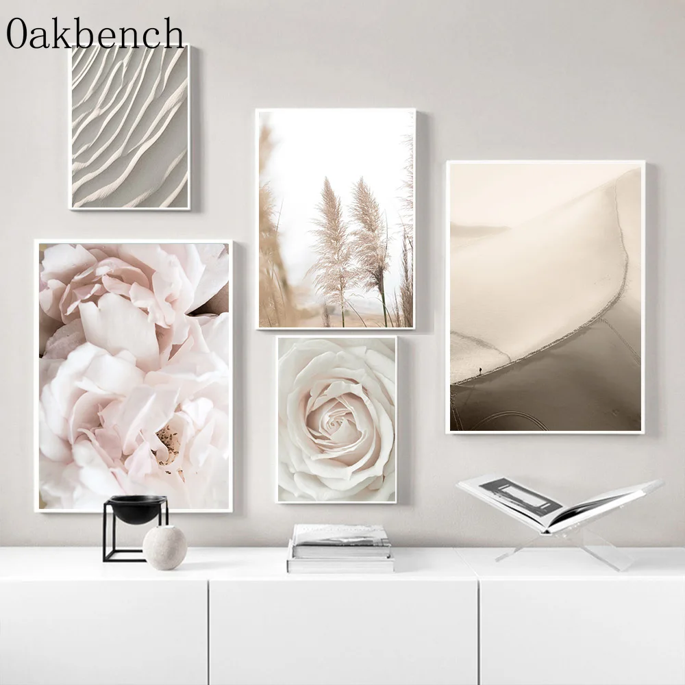 Постер с пионами в скандинавском стиле, Художественная Картина на холсте с рисунком язычков и цветов, дорожные настенные картины с изображением пейзажа, декор для гостиной