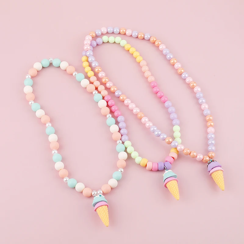 Ожерелье из смолы Makersland для девочек, детские ожерелья, из подвеска мороженое бисера, милые ювелирные украшения ярких цветов, Мультяшные украшения, рождественские подарки
