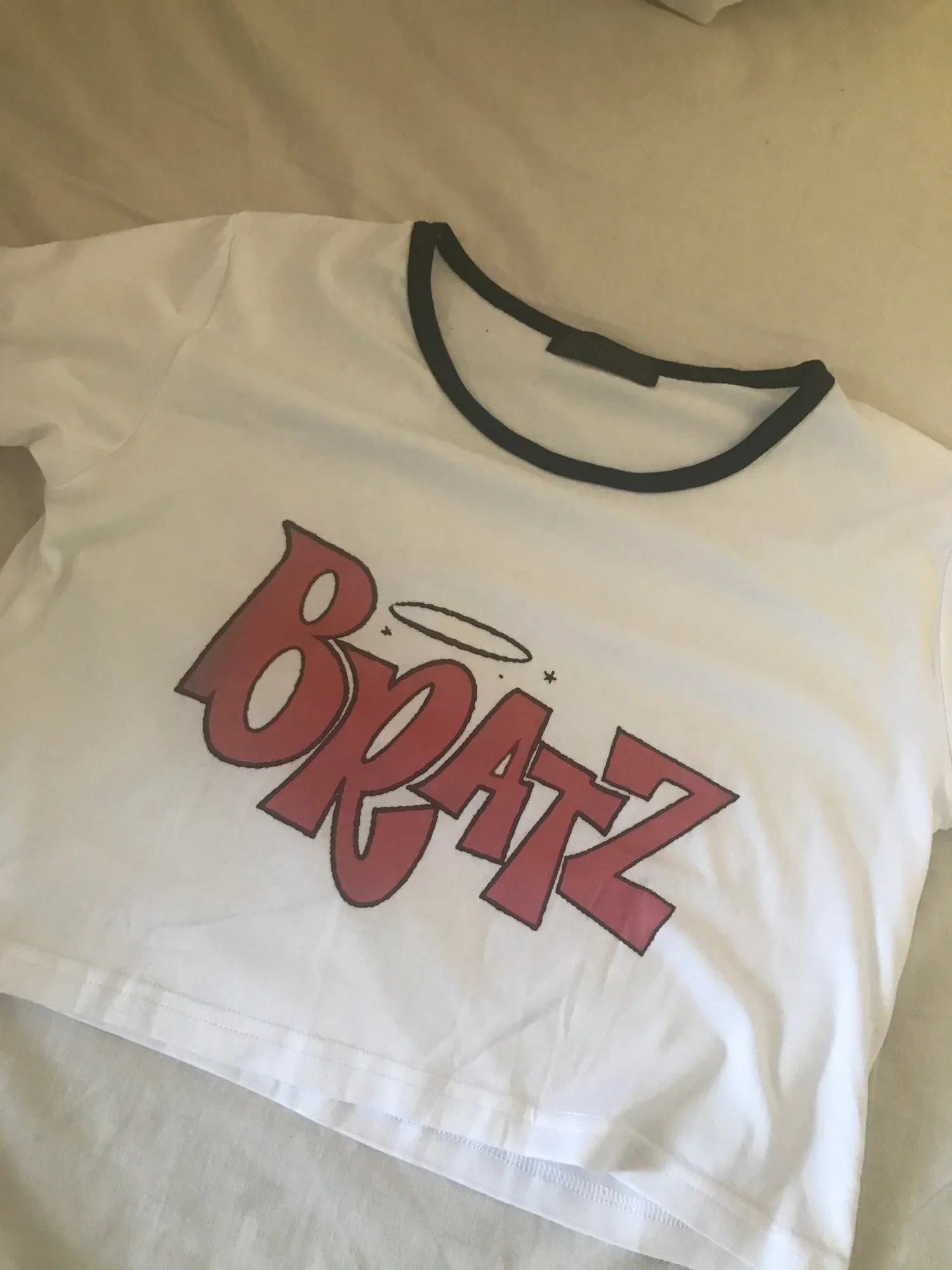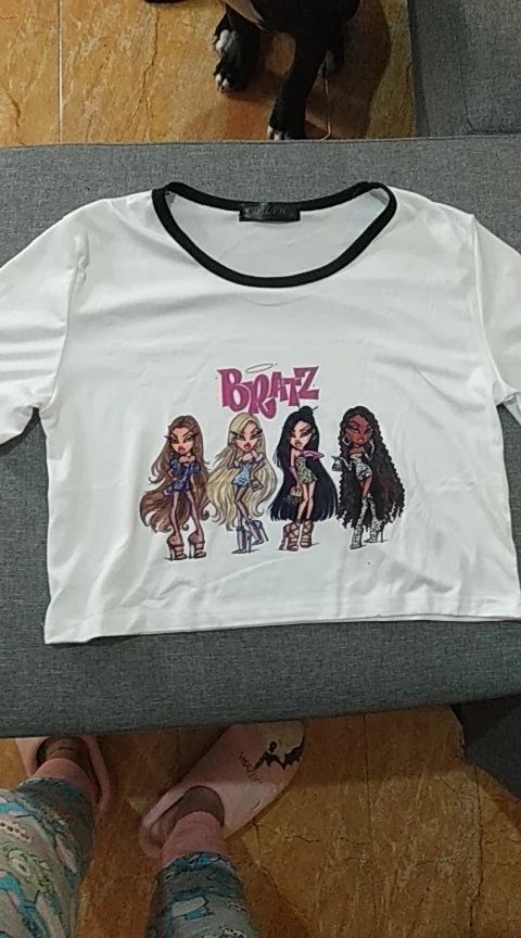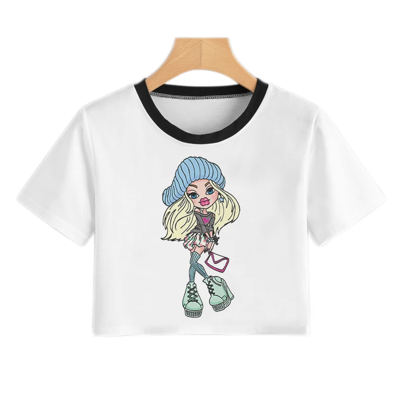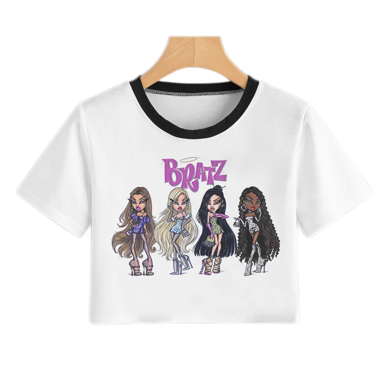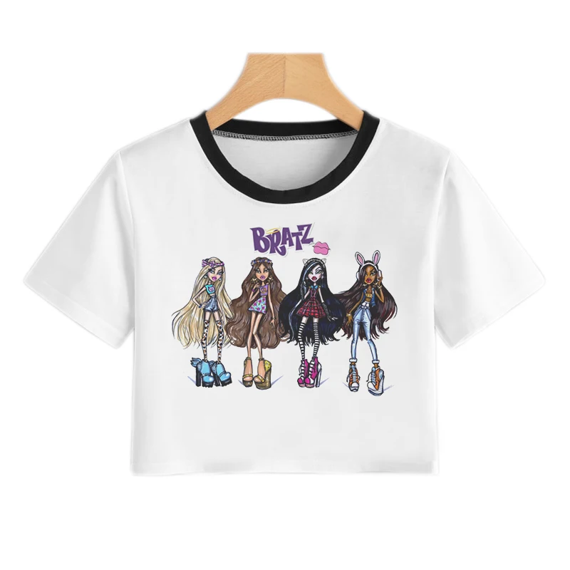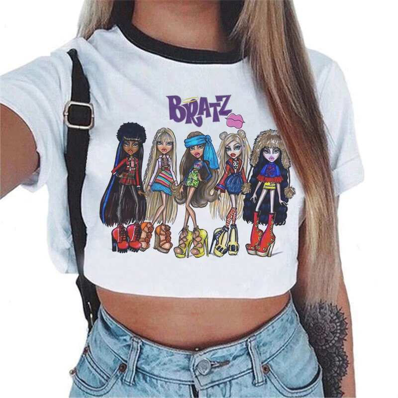 Футболка Bratz Женская короткая с мультяшным рисунком в стиле Харадзюку, уличная одежда, кроп-топ в стиле K-POP и хип-хоп с коротким рукавом, забавная Милая футболка для девушек, лето