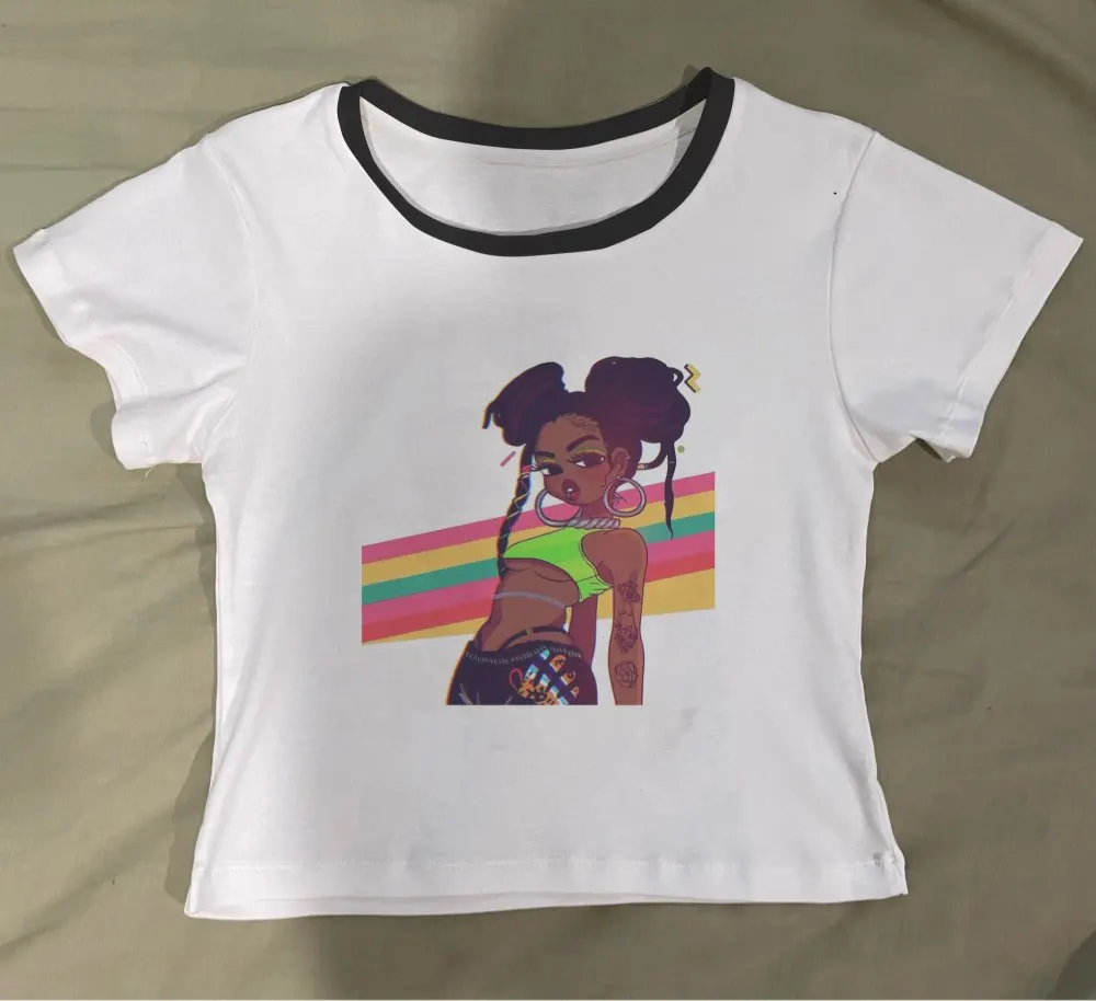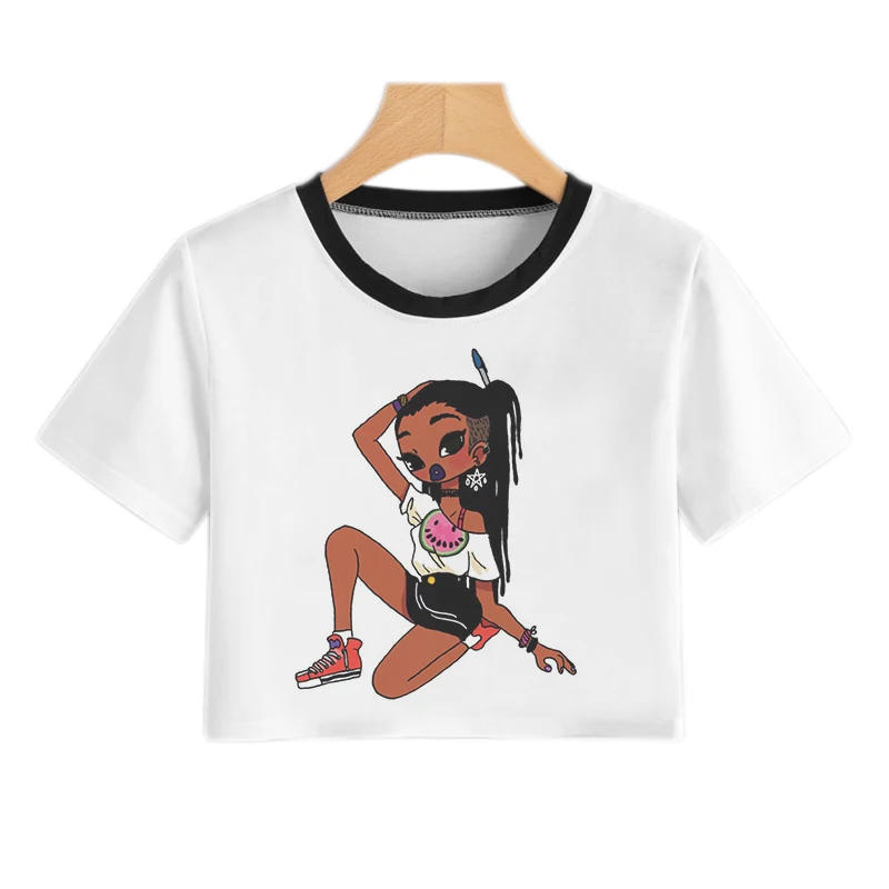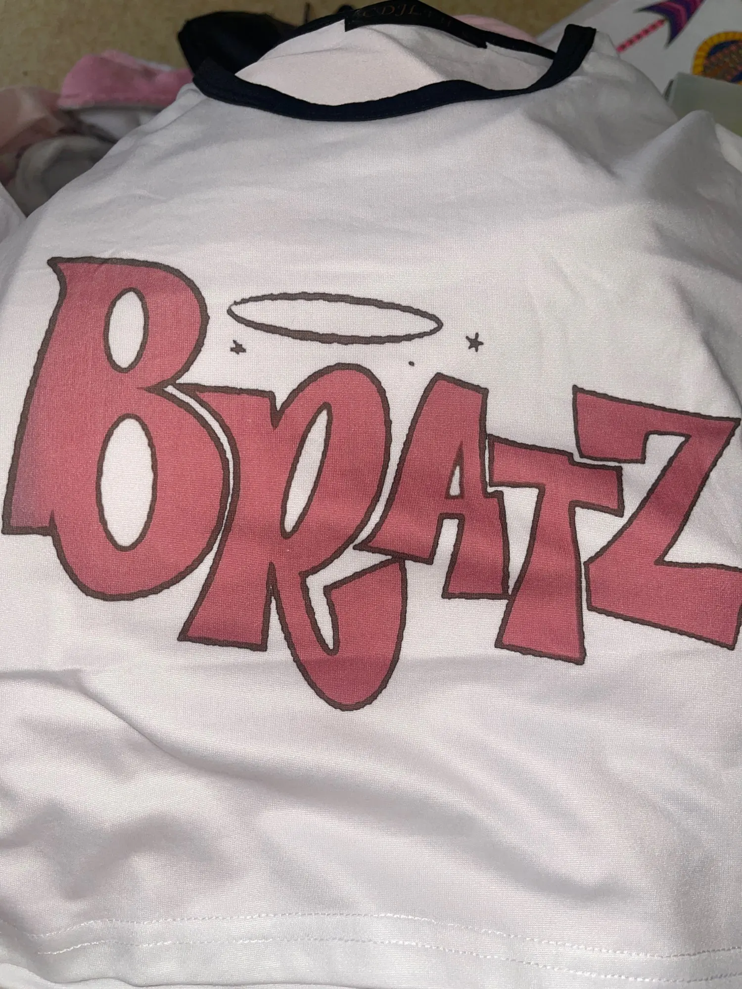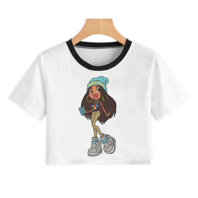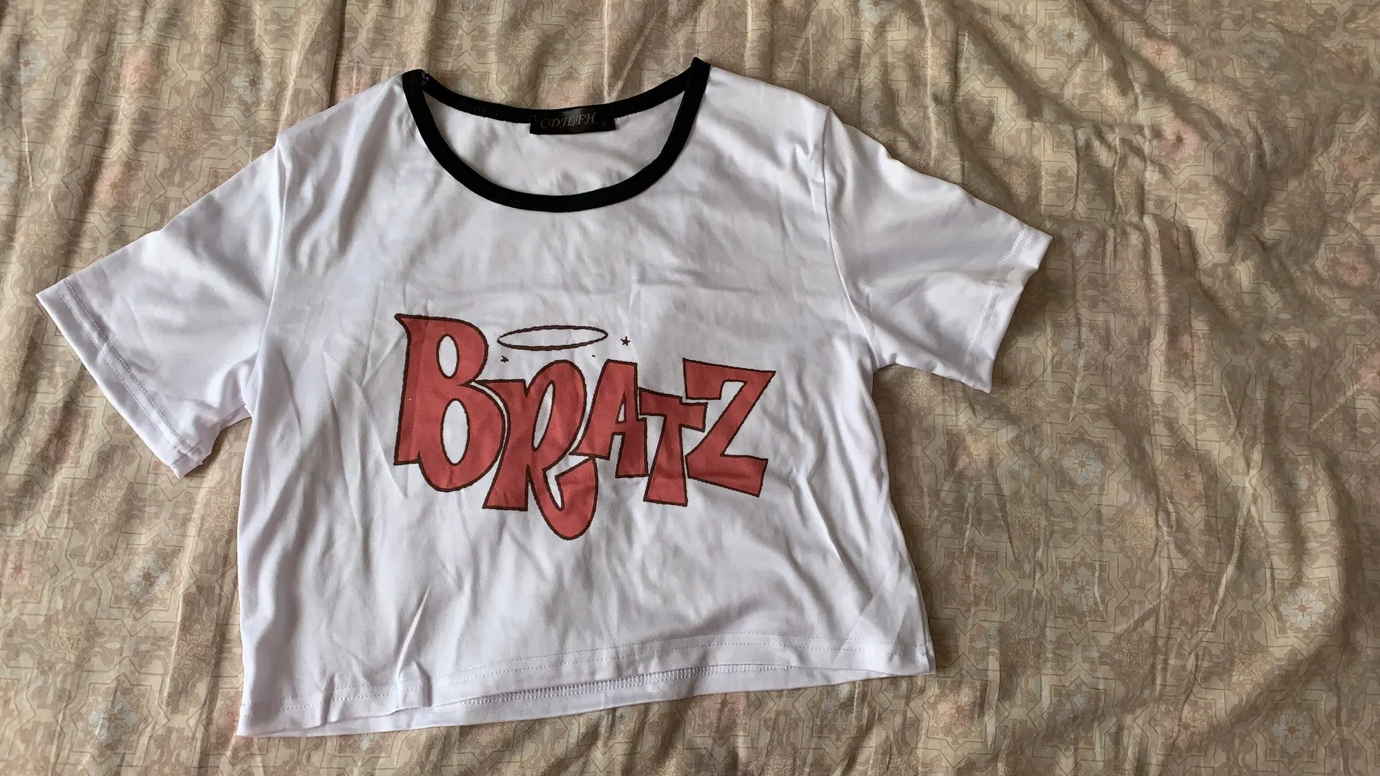 Футболка Bratz Женская короткая с мультяшным рисунком в стиле Харадзюку, уличная одежда, кроп-топ в стиле K-POP и хип-хоп с коротким рукавом, забавная Милая футболка для девушек, лето