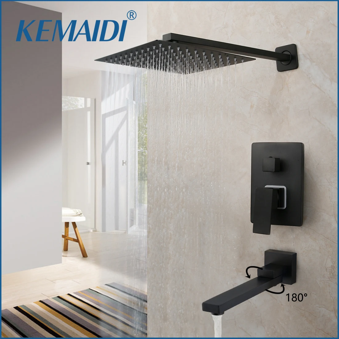 Набор матовых черных смесителей для душа KEMAIDI, дождевая Душевая система, настенное крепление, смеситель для ванны и душа, комбинированный набор