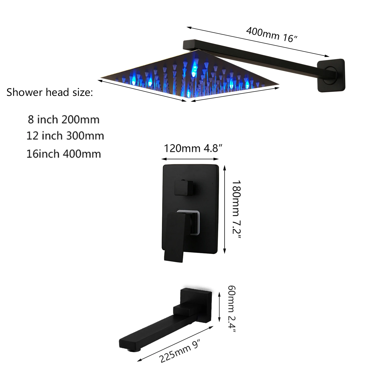 Смеситель для душа, 81216 дюймов, матовый черный, со светодиодной п...