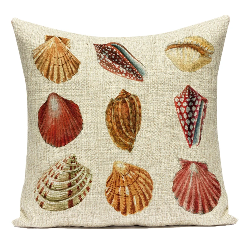 Винтаж Стиль декоративные подушки Чехол полиэстер Домашний диван Гостиная декоративная раковина кораллы, морские звезды наволочка с животными чехол