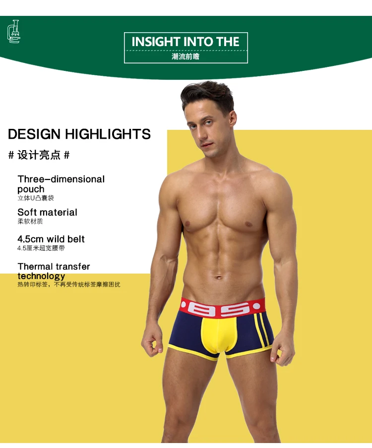 4 шт.лот модные хлопковые сексуальные мужские трусы для геев, боксе...