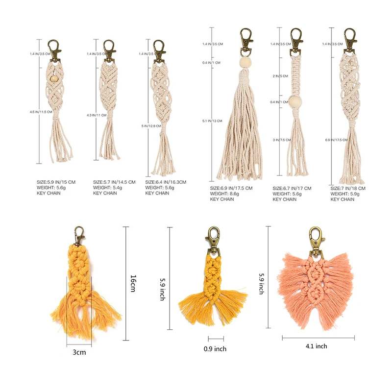 Брелки в стиле макраме с кисточками, в стиле Бохо