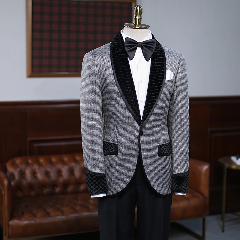 Новинка, мужские костюмы, индивидуальный пошив, искусственная кожа, с одной кнопкой, с заостренным лацканом, одежда для жениха, индивидуальный пошив, повседневные деловые костюмы, костюм из 2 предметов