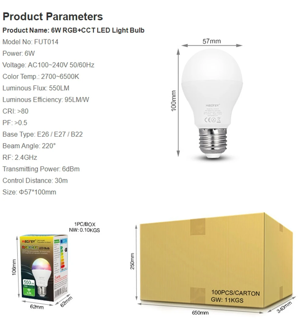 AC100 240V MiBoxer(Mi светильник) 2,4G светодиодные лампы Точечный светильник MR16 GU10E27 лампа Смарт Беспроводной 46912 Вт цветовая температураRGB + CCT светодиодный светильник