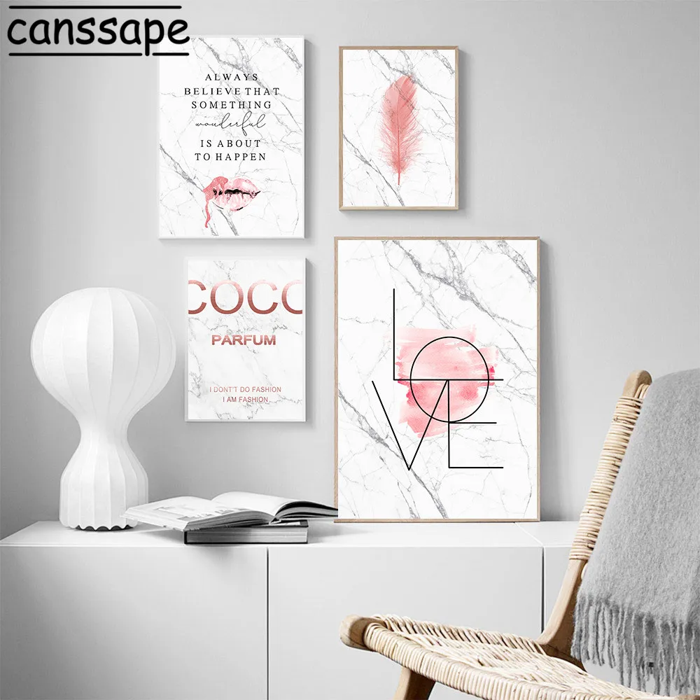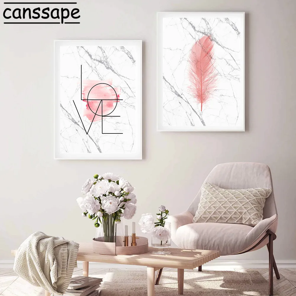 Картина на холсте с надписью Love, современный модный мраморный пос...