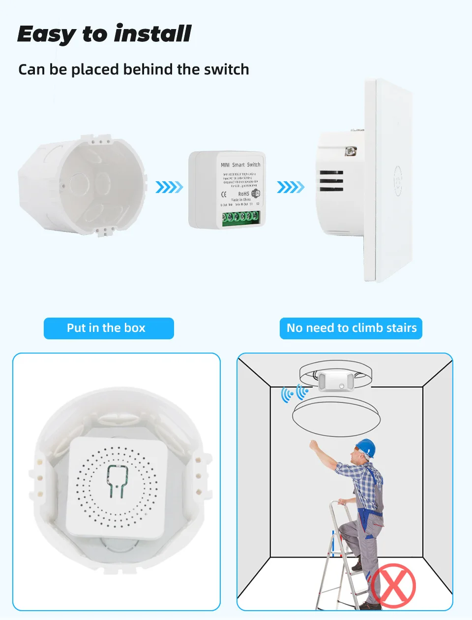Переключатель Mini Tuya Wi-Fi с поддержкой А, двухсторонний Модуль ...