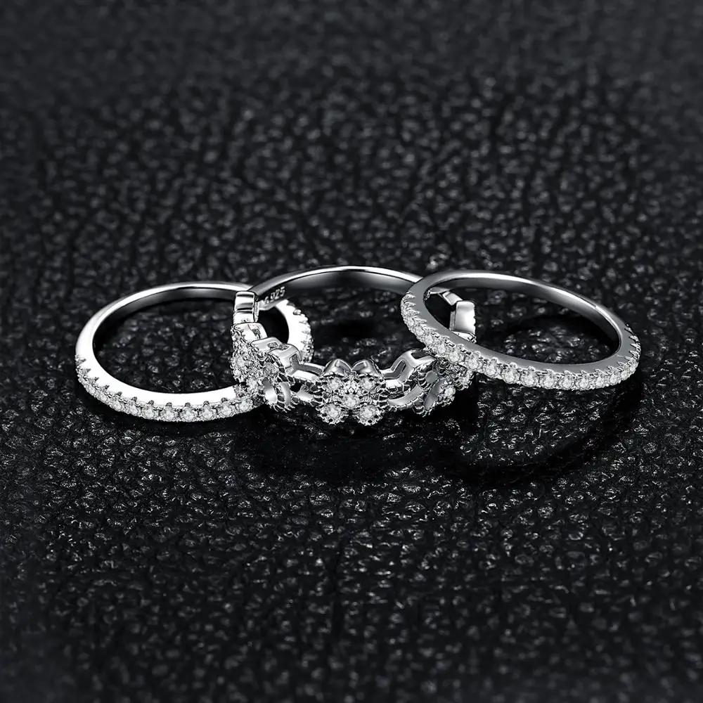 Комплект женских колец из серебра 925 пробы с искусственным бриллиантом