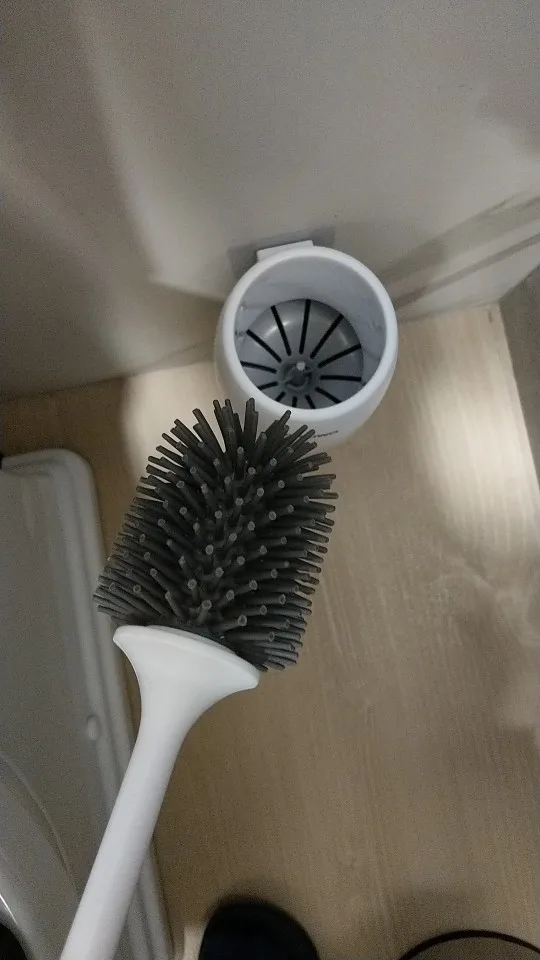 Силиконовый ершик очень хорошего качества. Никогда не думала, что буду в восторге от туалетного ершика. Удобно, что можно подвешивать на стену, держится крепко.