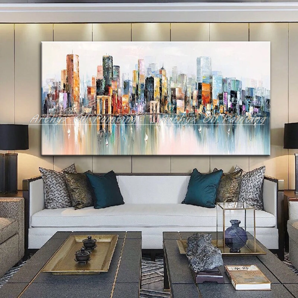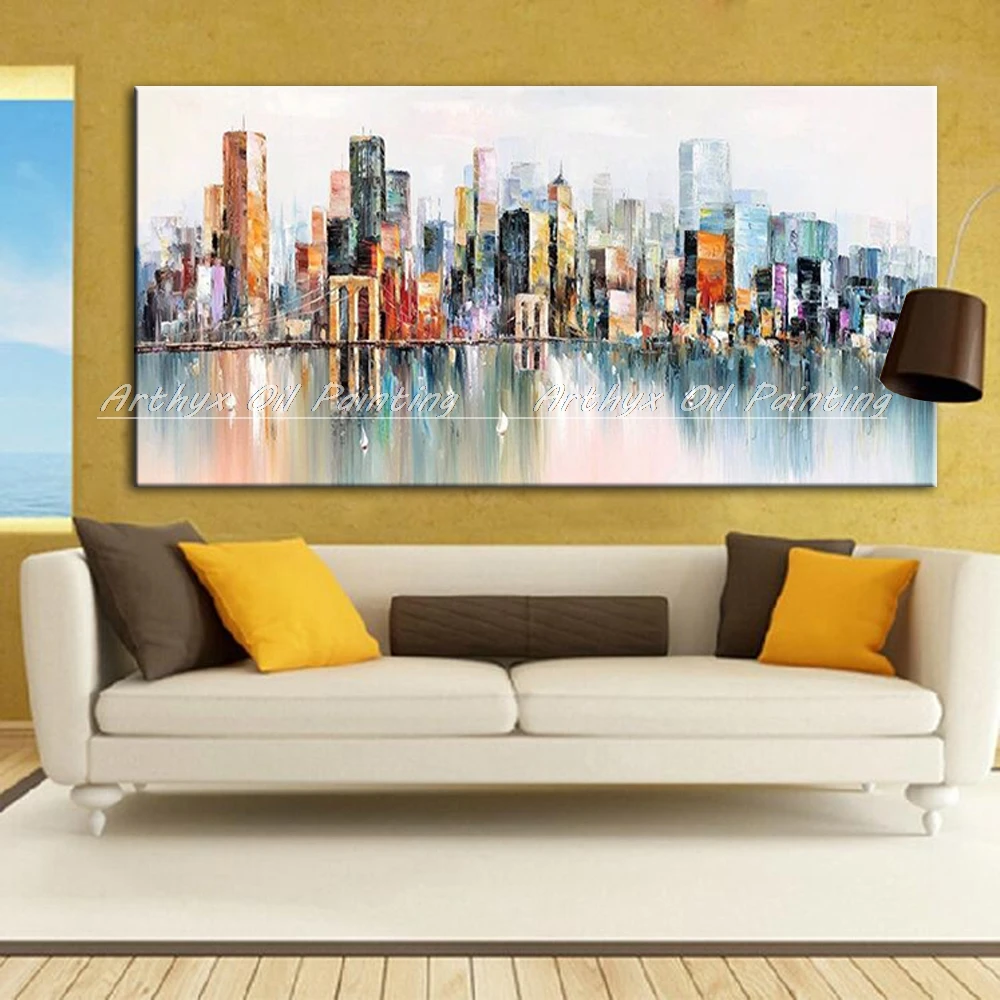 Arthyx ручная роспись нож городской пейзаж картина маслом на холсте Современная Абстрактная Настенная картина для гостиной украшение дома