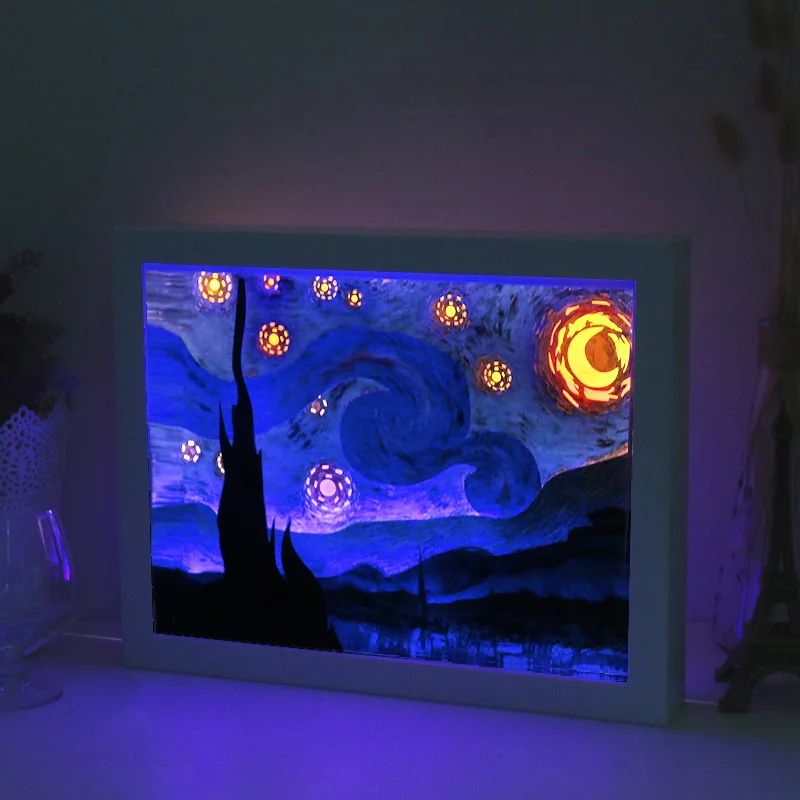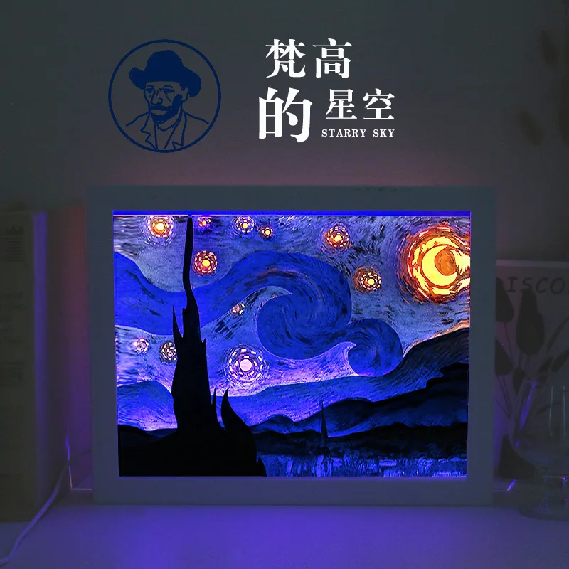 3d лампа для резьбы по бумаге тень Ван Гог звездное небо USB ночные...