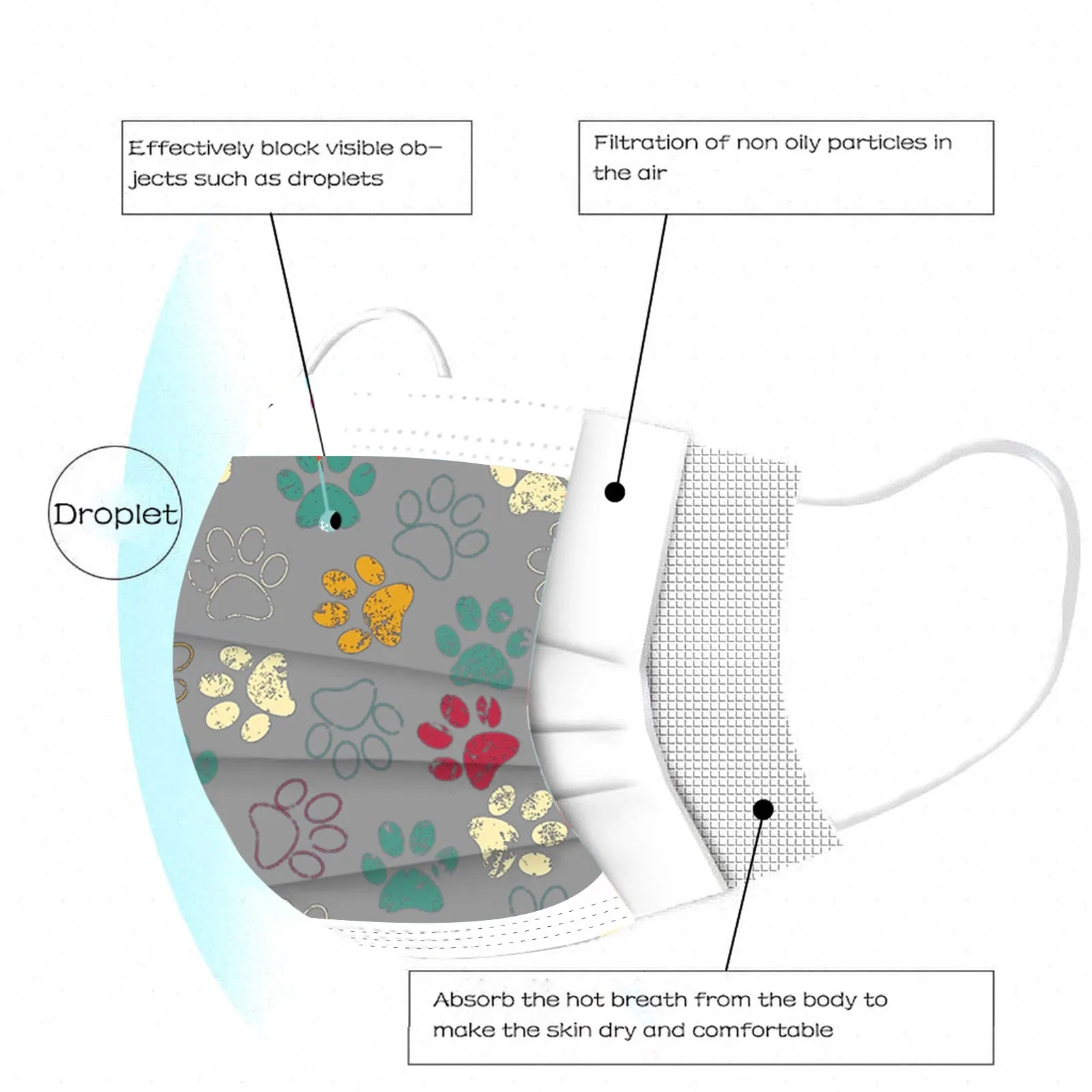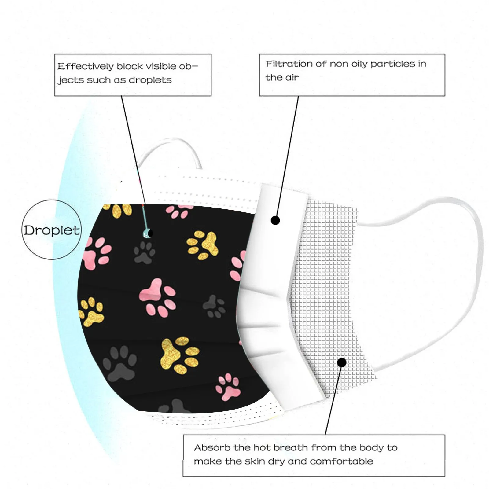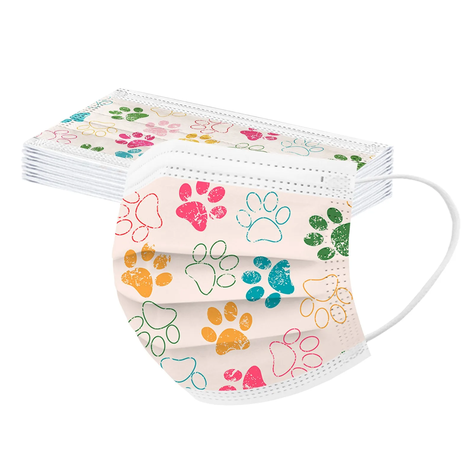 10 шт., трехслойная Защитная дышащая маска с принтом кошачьей лапы