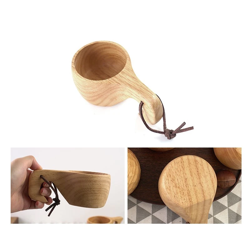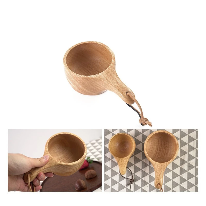 Деревянная чашка для питья, традиционная кофейная чашка с кожаным р...