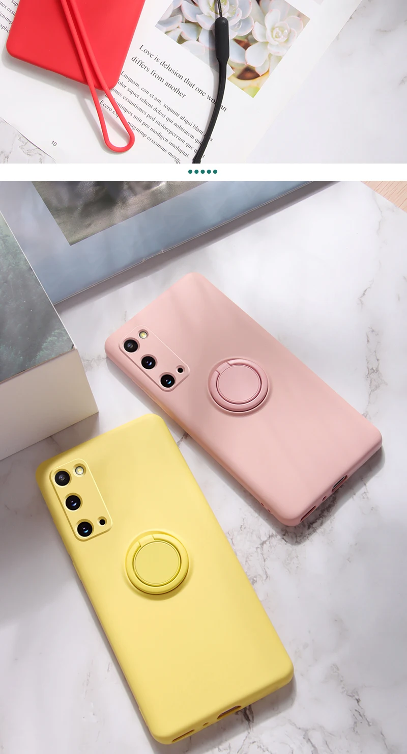 Жидкий силиконовый чехол для Samsung Galaxy S20 FE S10 Plus Note 20 Ultra 8 10 Pro A51 A71 A50 A70 с магнитной подставкой и кольцом