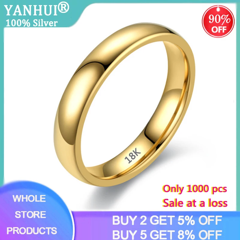 Распродажа в убыток! Оригинальные однотонные кольца из нержавеющей стали никогда не выцветают, золото 18 карат, блестящие кольца для женщин и мужчин, простые парные кольца KR050