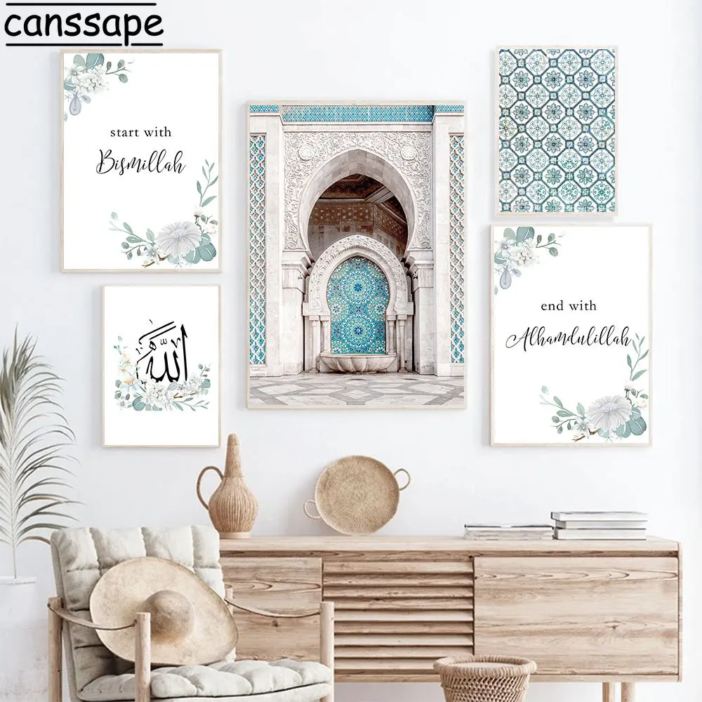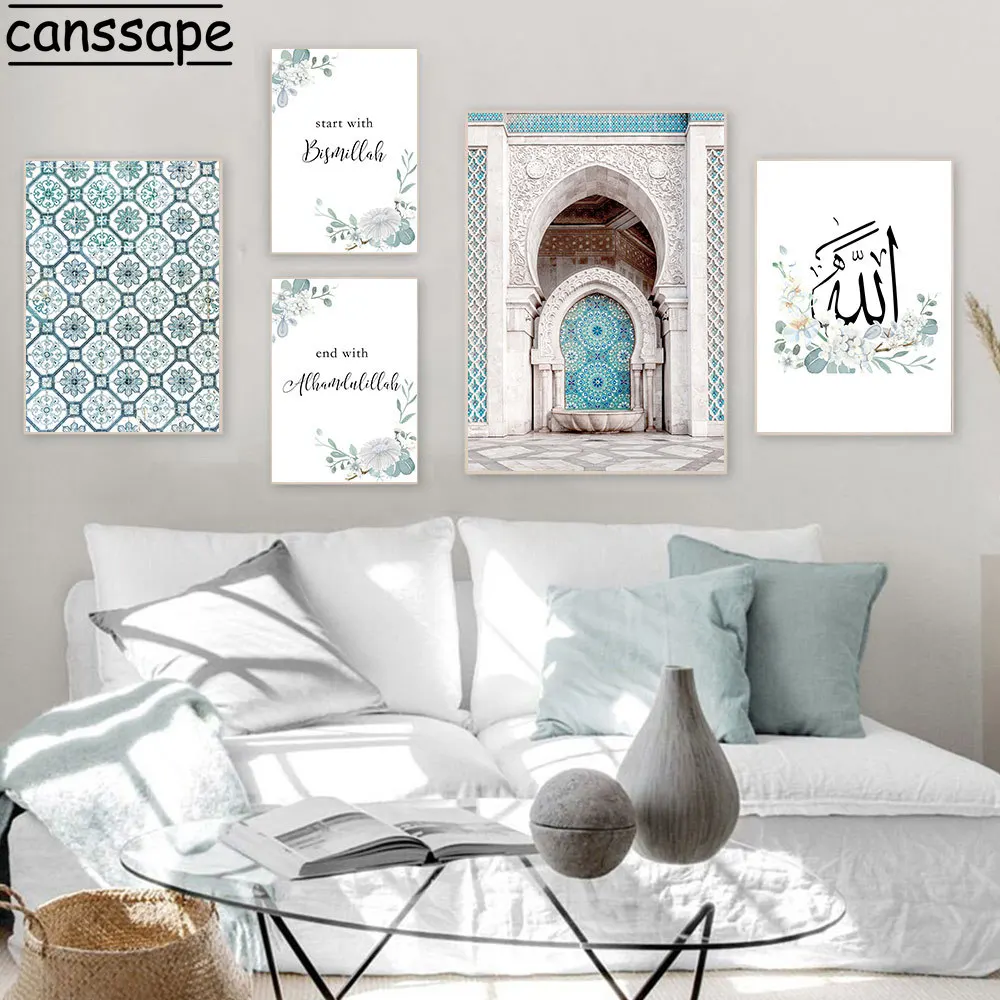 Марокканская мусульманская настенная печать постер изогнутый мусульманский холст роспись постеры синий цветок настенные картины украшение для дома