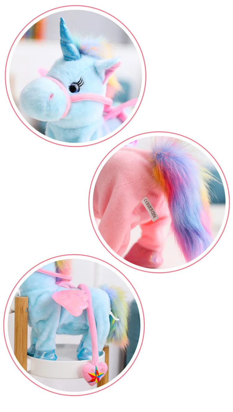 Игрушка плюшевая электрическая ходячая единорог, 35 см