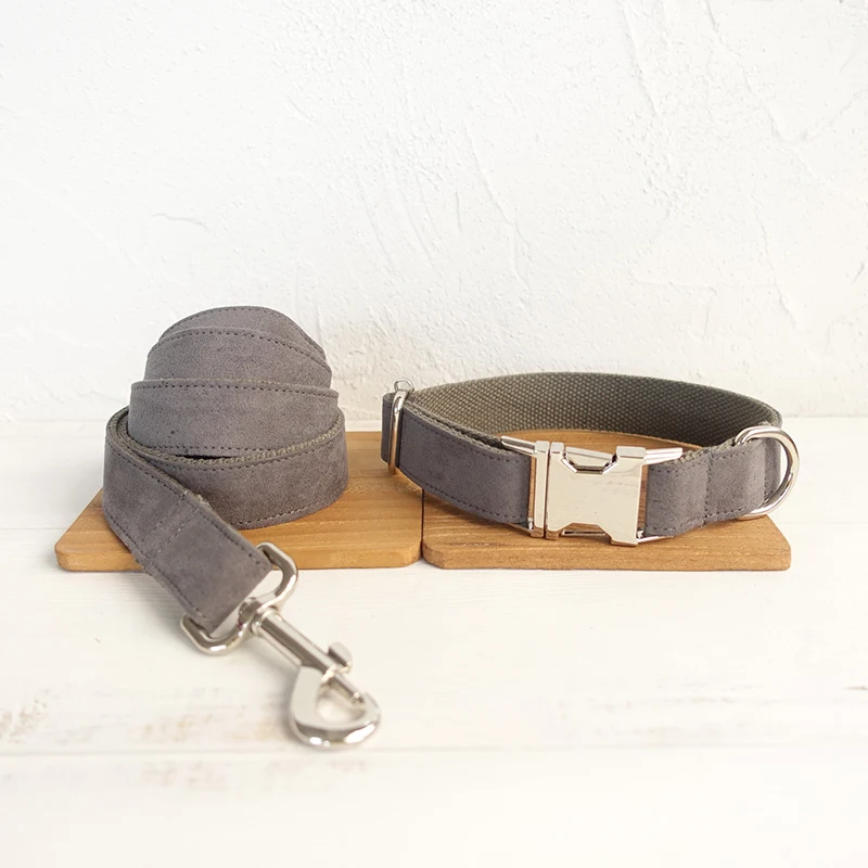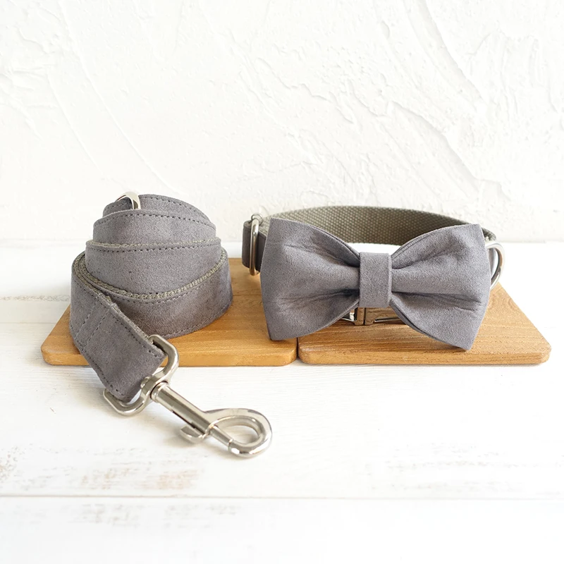 Ошейник темно-серого цвета с галстуком-бабочкой и поводком для собак и кошек