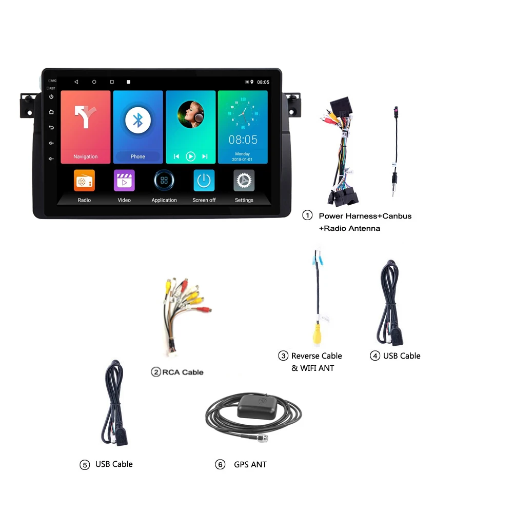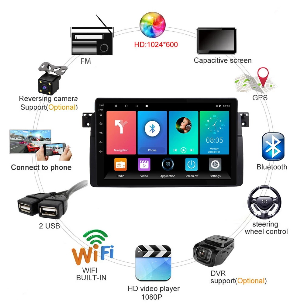 CarPlay Автомагнитола Магнитола Автомобильное радио, мультимедийный видеоплеер, GPS-навигатор, Wi-Fi, 2 DIN, Android 8.1, для BMW E46, M3, Rover 318320325330335 2 дин андройд Аудио Автомагнитолы