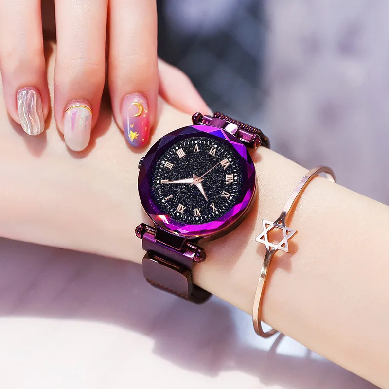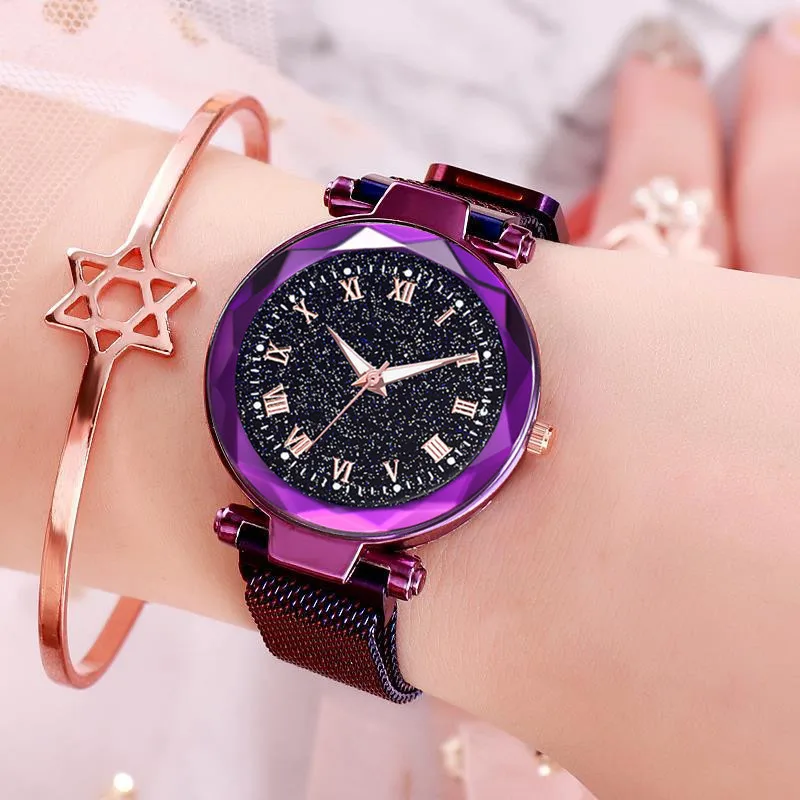 Новый бренд Rosy Золотая сетка магнитная пряжка звездное небо Кварцевые часы Женские повседневные часы Relogio Feminino женские наручные часы Лидер продаж
