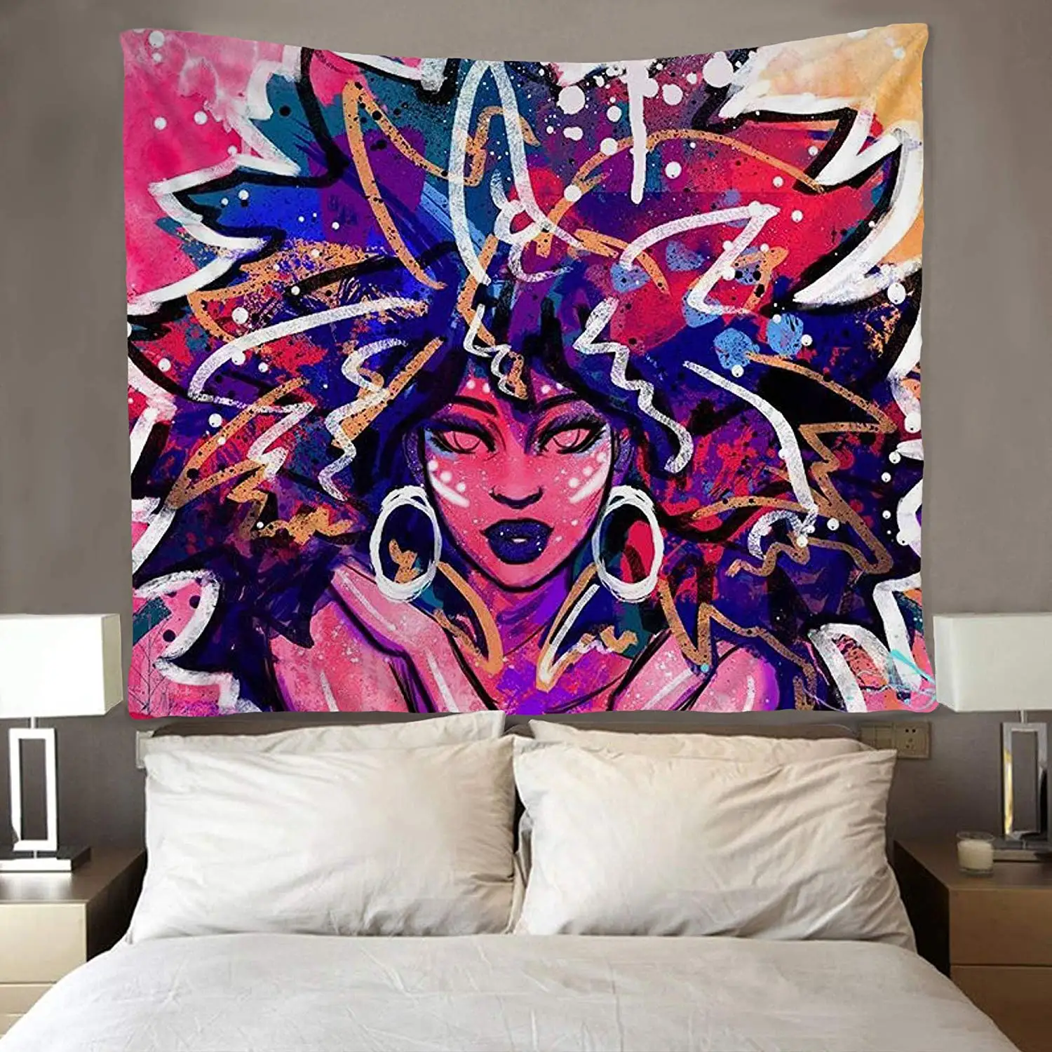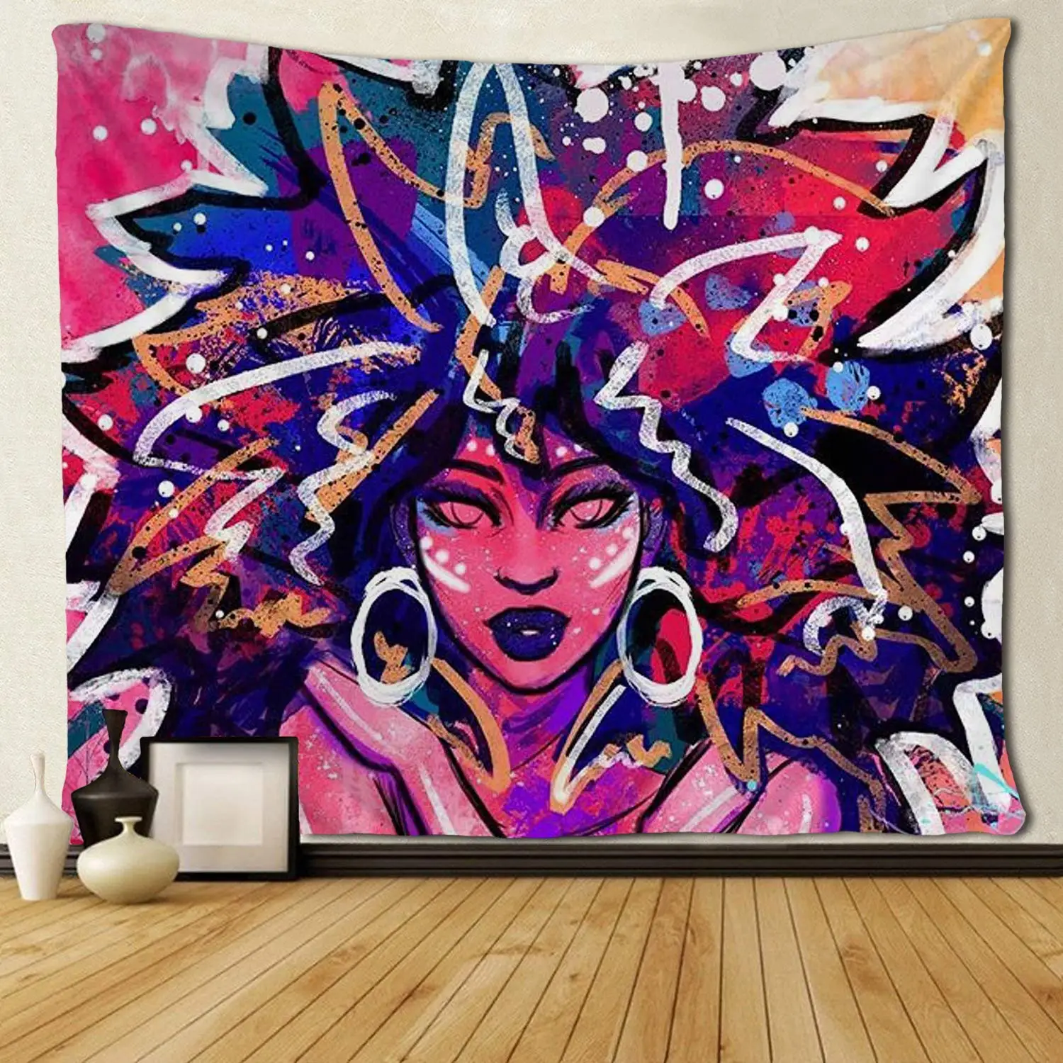 Афро-американские женские африканские искусства, Цветочные волосы, гобелены, хиппи, Уникальное Настенное Украшение