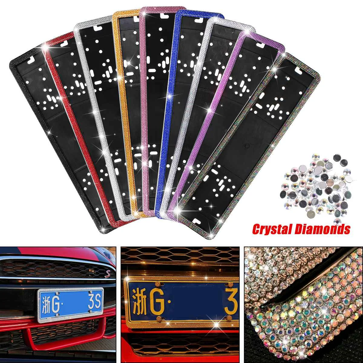 Посылка включает в себя:1 x Рамка номерного знака с винтовыми аксессуарами (лицензия не включена.)(Пакет запасных акриловых бриллиантов бесплатно)