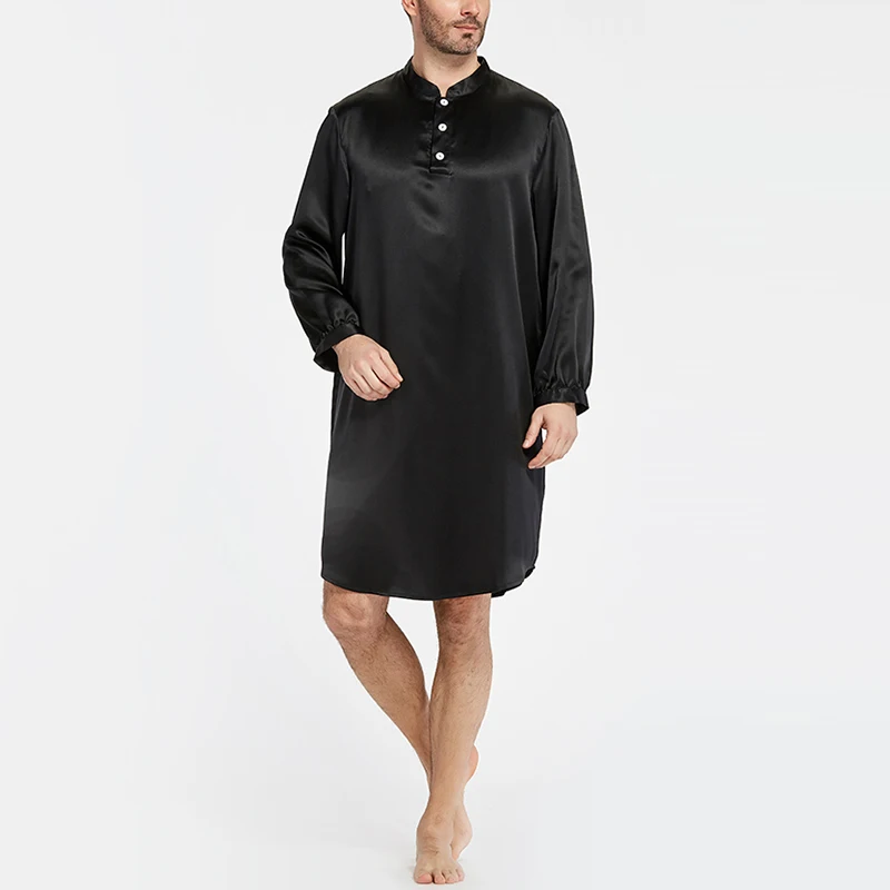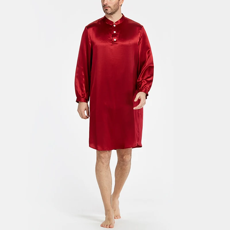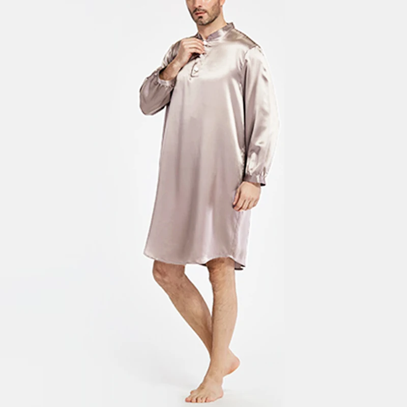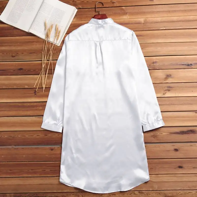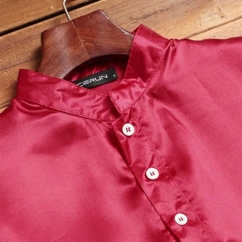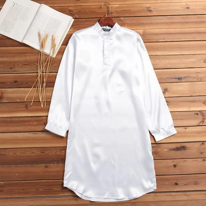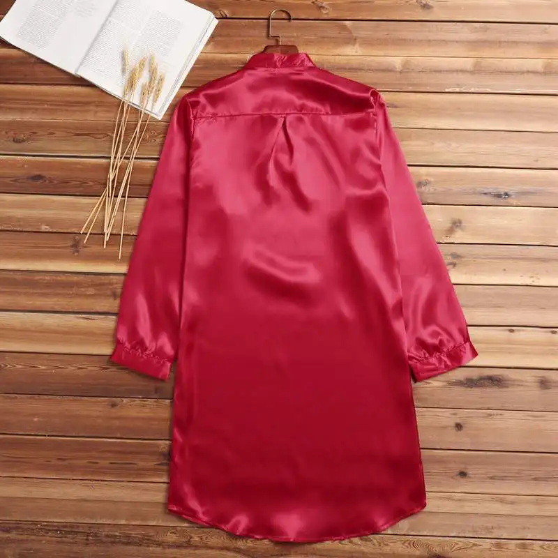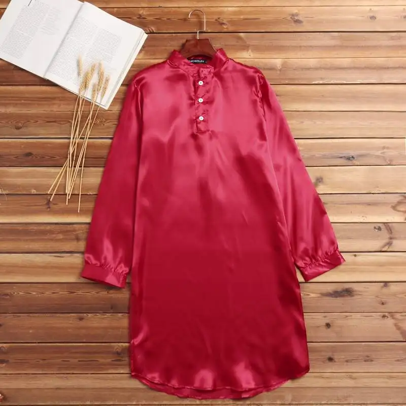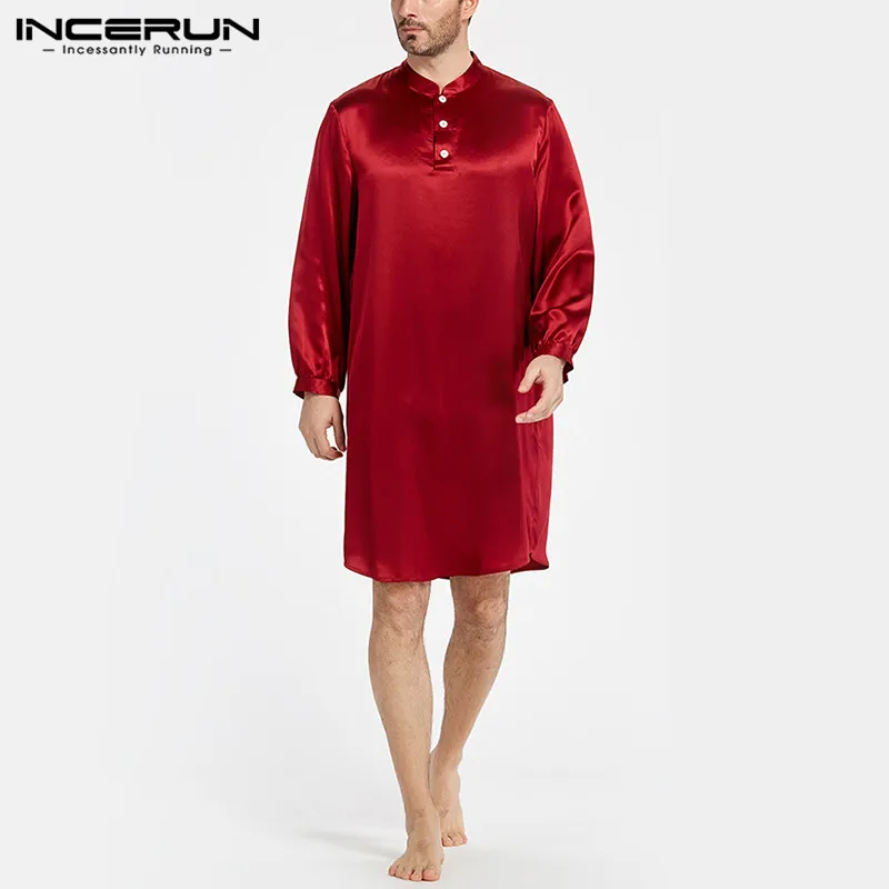 INCERUN однотонные Цвет Ночная рубашка мужские халаты пижамы шелковый атлас с длинным рукавом и стоячим воротником халат человек элегантные зимнюю детскую одежду для сна с S-5XL
